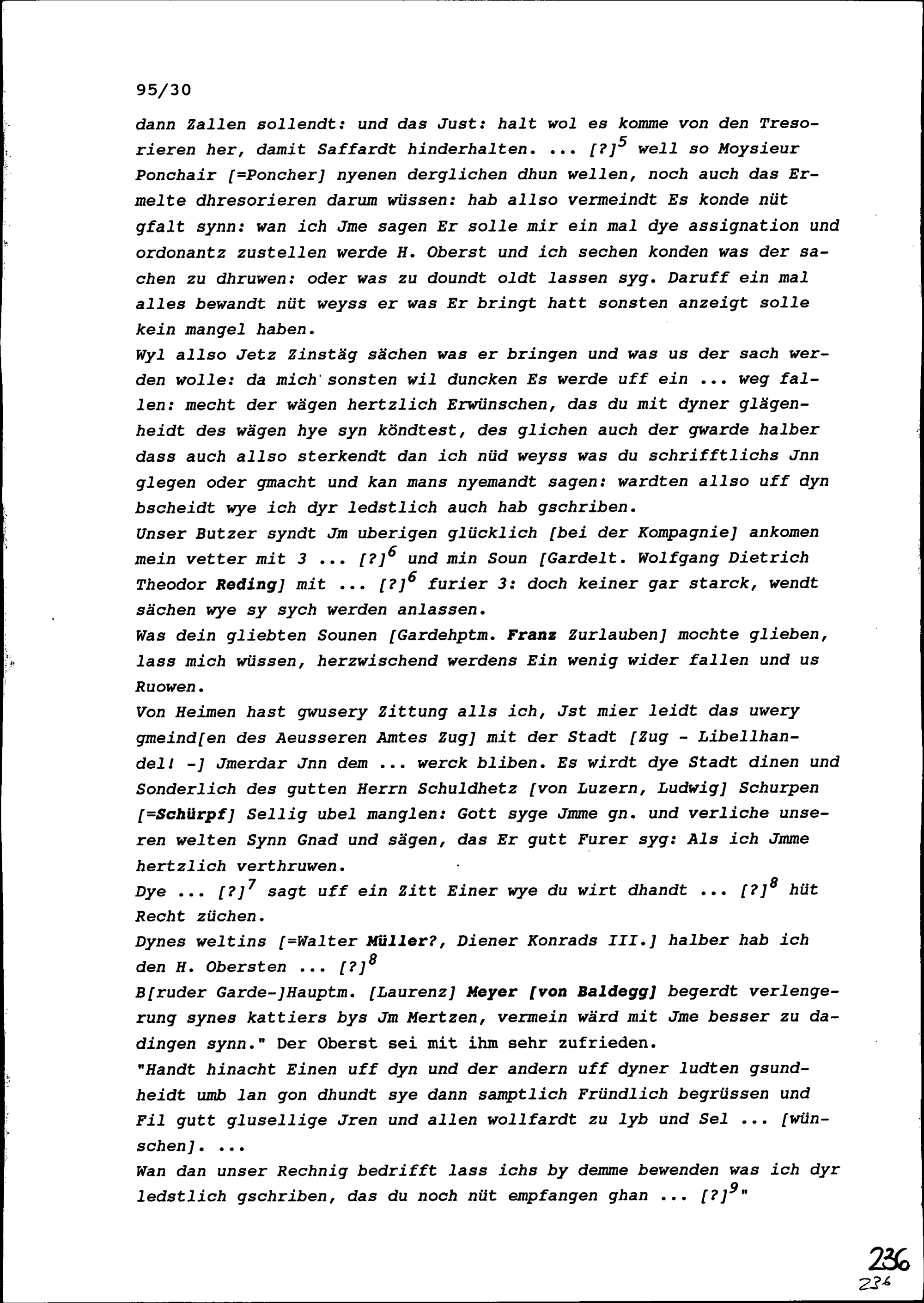 Schreiben von Heinrich Reding, Gardehauptmann, an Konrad III. Zurlauben, Altammann...
