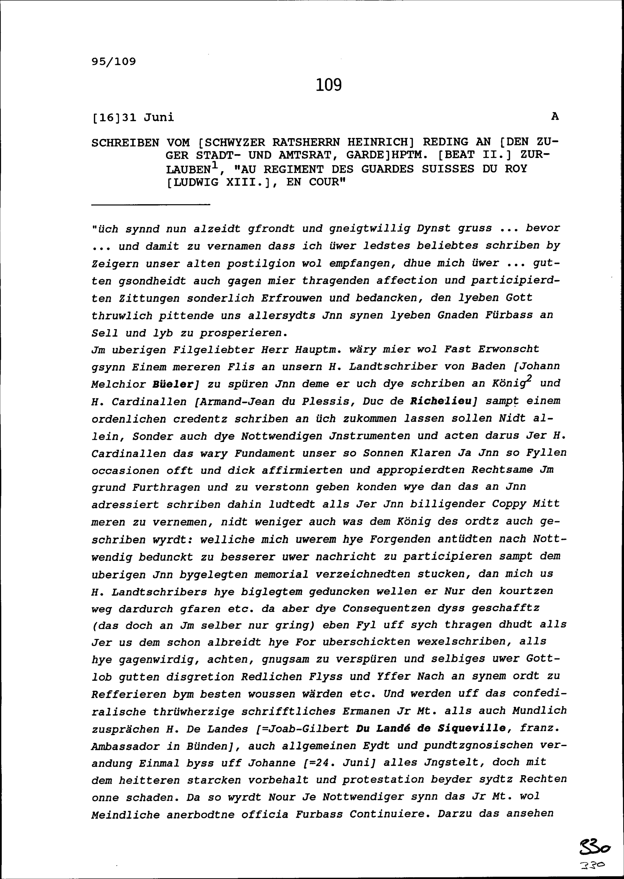 Schreiben von Heinrich Reding, Ratsherr Schwyz, an Beat II. Zurlauben, Stadt- und Amtrat Zug und Gardehauptmann, am Hof