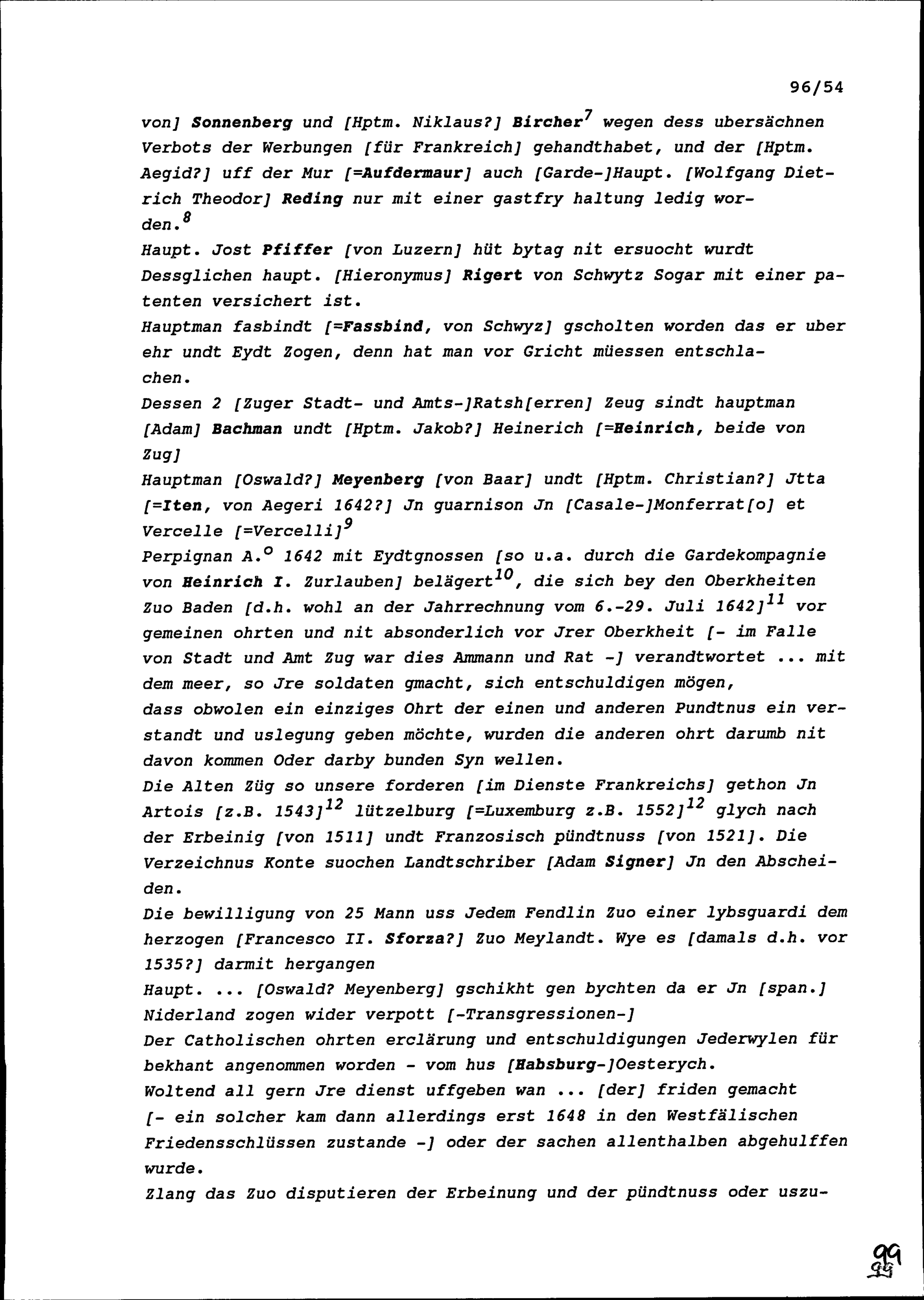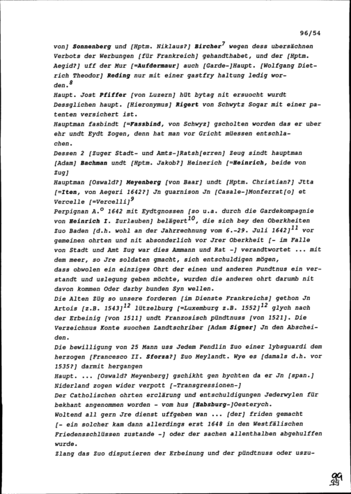 Notiz von Beat II. Zurlauben, Stadt- und Amtrat Zug, insbesondere über Fragen der Fremden Dienste in Frankreich