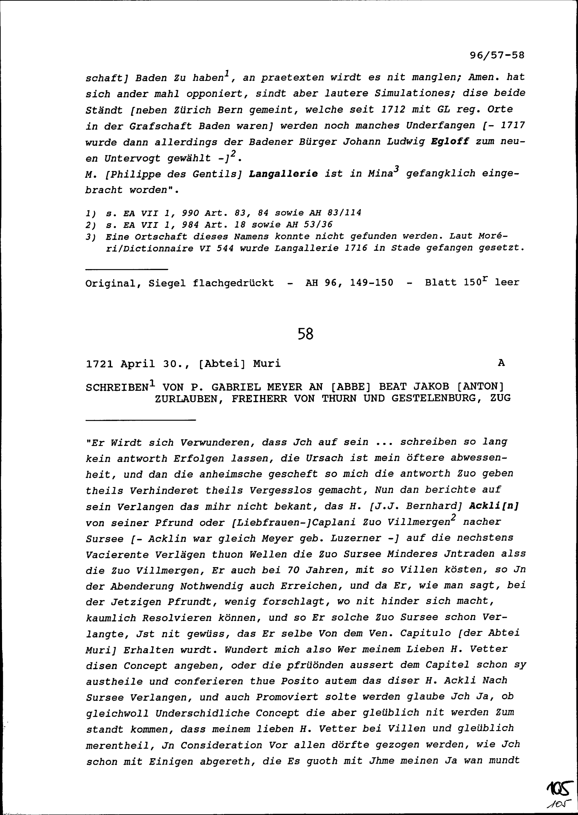 Schreiben von Gabriel Meyer, Konventuale, an Beat Jakob Anton Zurlauben, Priester, Zug