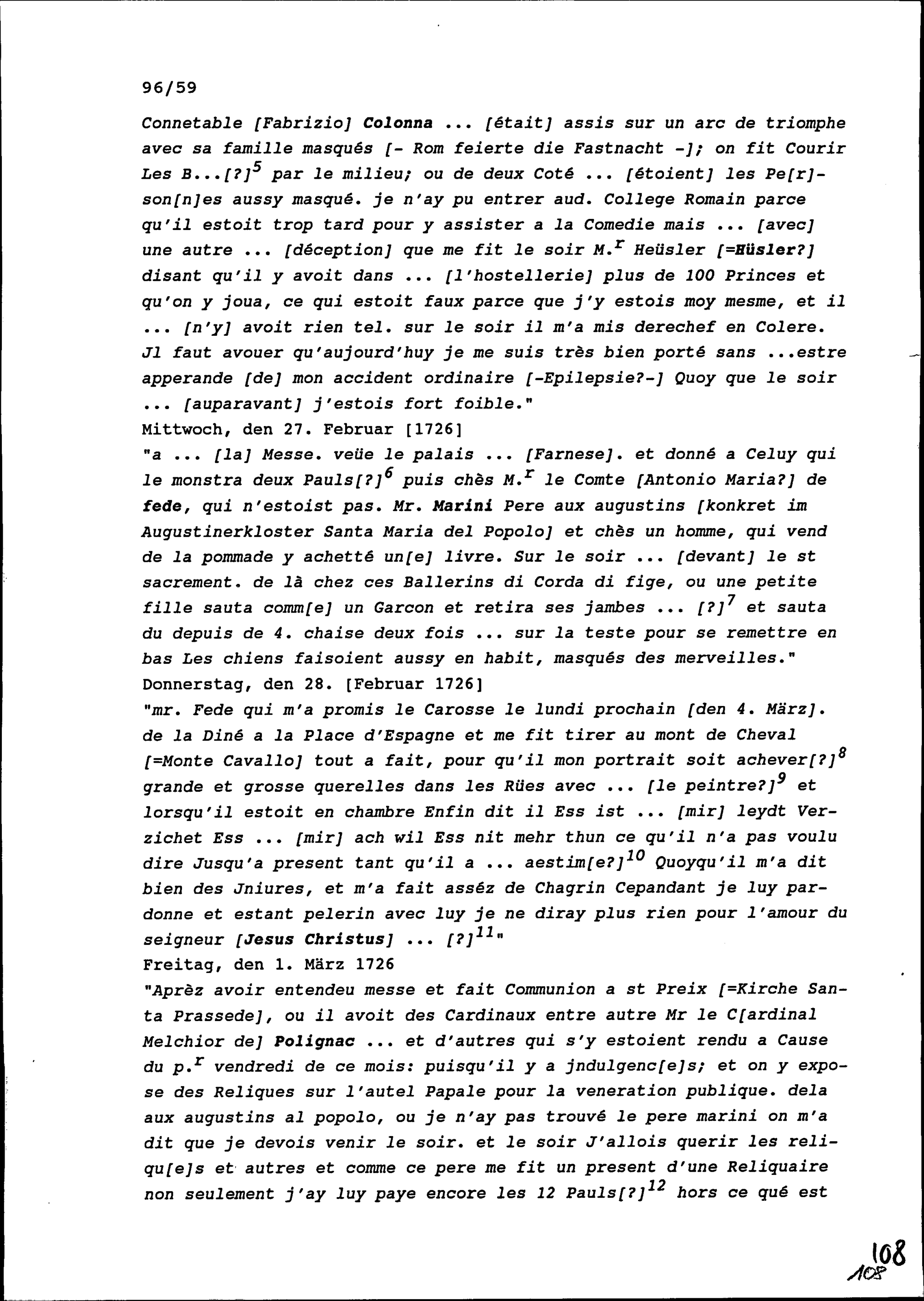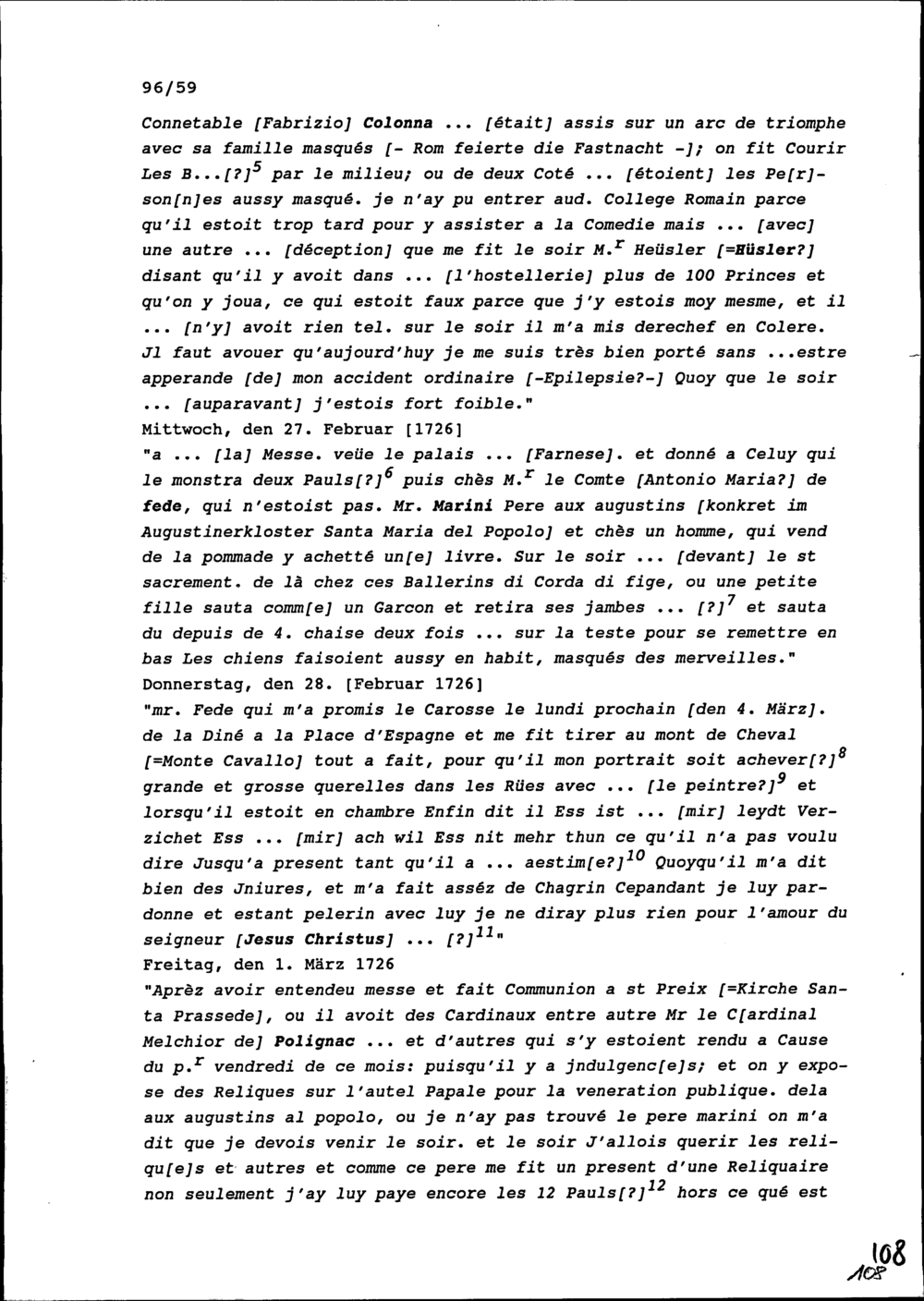 Tagebuch von Heinrich Damian Leonz Zurlauben, Rompilger (Auszug)