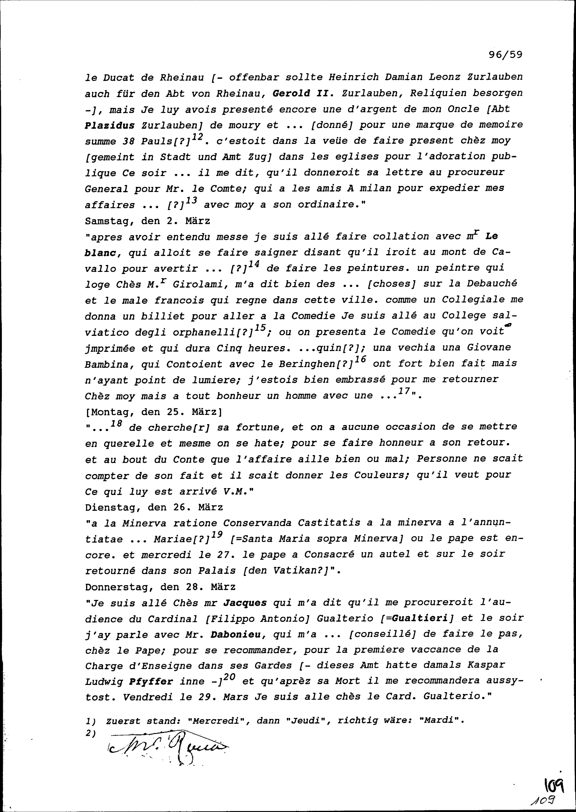 Tagebuch von Heinrich Damian Leonz Zurlauben, Rompilger