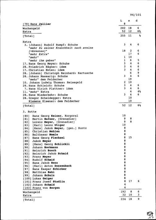 Mannschaftsrodel der Kompanie von Beat Jakob II. Zurlauben, Hauptmann im Regiment Pfyffer