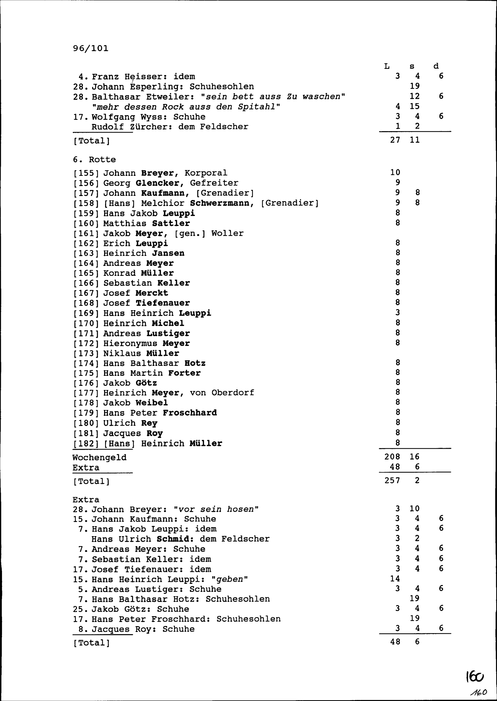 Mannschaftsrodel der Kompanie von Beat Jakob II. Zurlauben, Hauptmann im Regiment Pfyffer