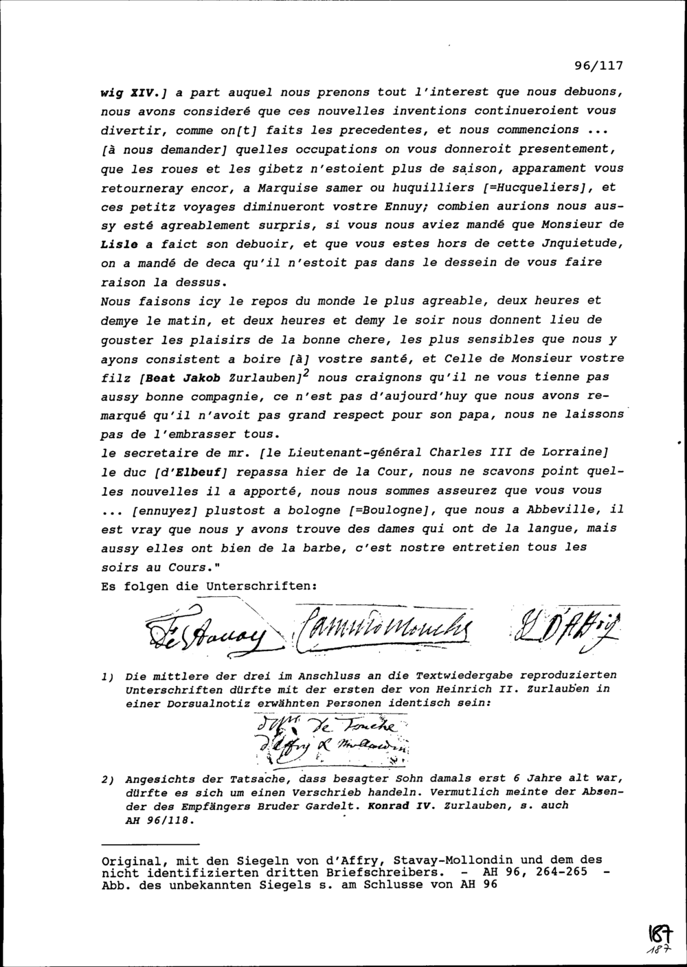 Schreiben von Jean-Louis d'Affry, Gardehauptmann, von Franz Ludwig Blasius de Stavay-Mollondin, Gardehauptmann, und von Unbekannt an Heinrich II. Zurlauben, Hauptmann in Boulogne