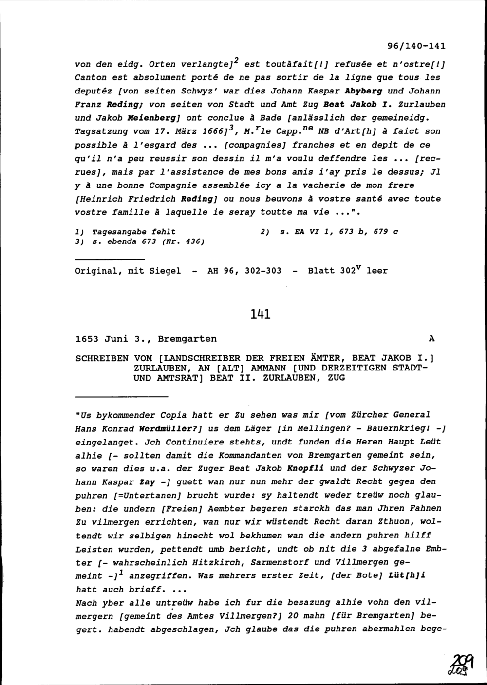 Schreiben von Beat Jakob I. Zurlauben, Landschreiber der Freien Ämter, an Beat II....