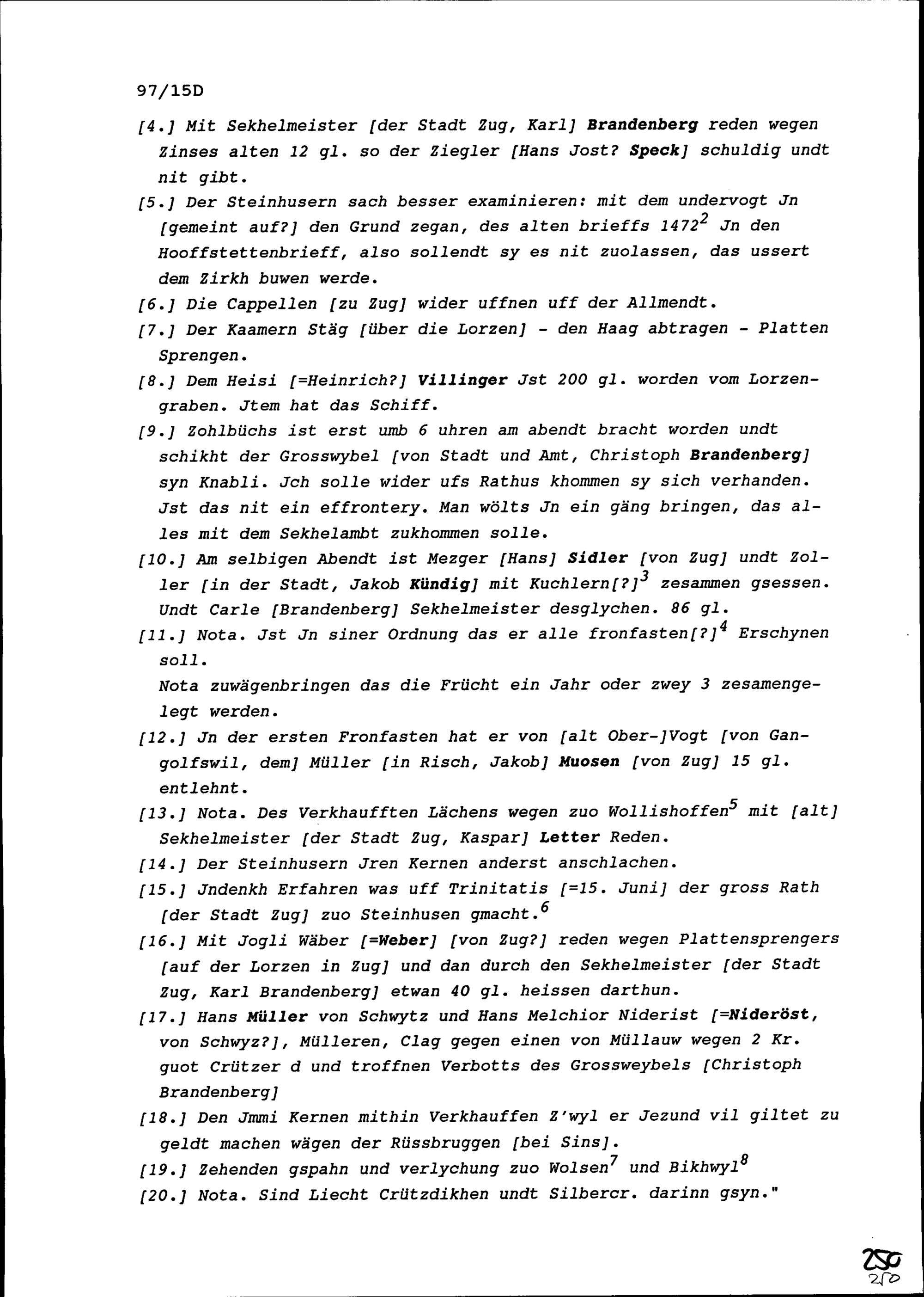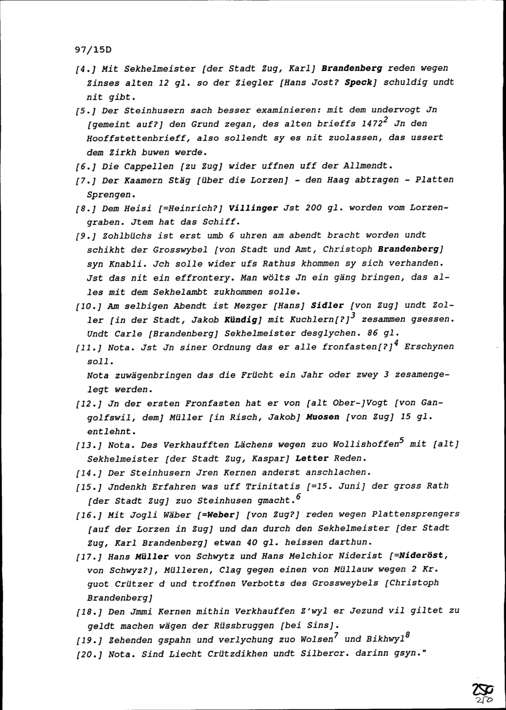 Notiz von Beat II. Zurlauben, Stabführer der Stadt Zug, über die Sitzung des Stadtrats vom 14. Juni 1642