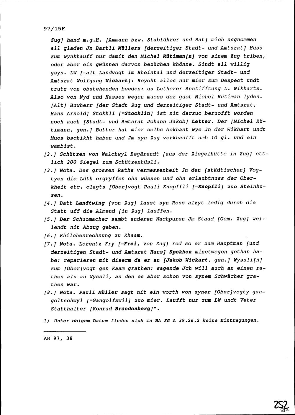 Notiz von Beat II. Zurlauben, Stabführer der Stadt Zug, über die Sitzung des Stadtrats vom 24. Juni 1642