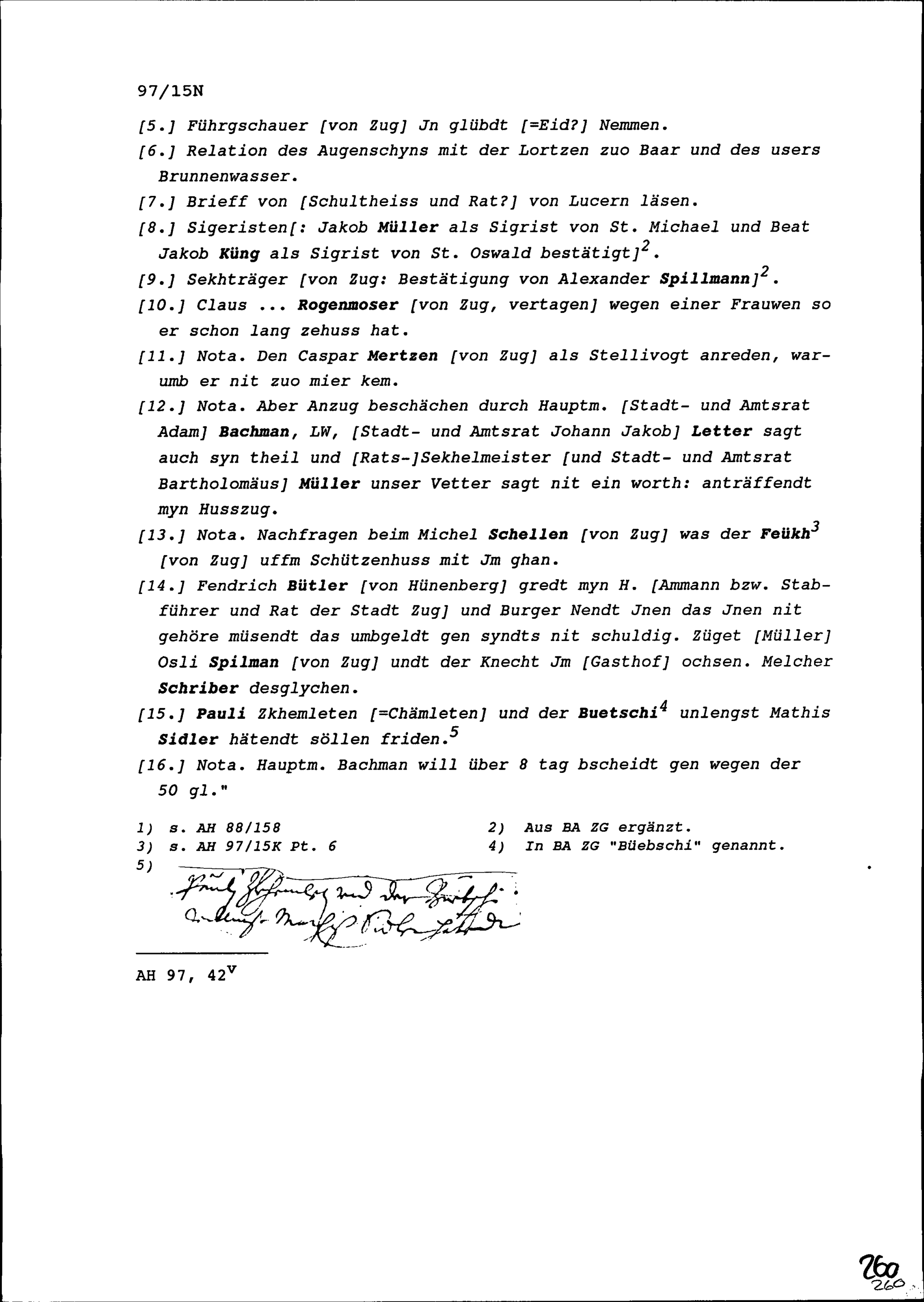 Notiz von Beat II. Zurlauben, Stabführer der Stadt Zug, über die Sitzung des Stadtrats vom 8. November 1642