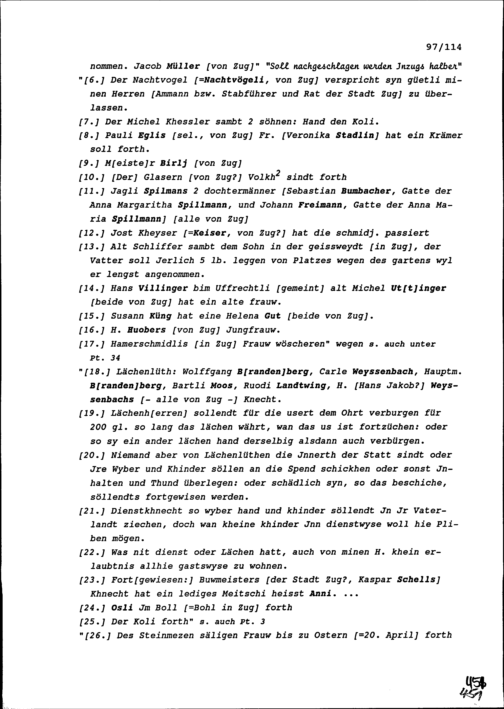 Notiz von Beat II. Zurlauben, Stabführer der Stadt Zug, über die Gemeindeversammlung der Stadt Zug vom 10. Januar 1642