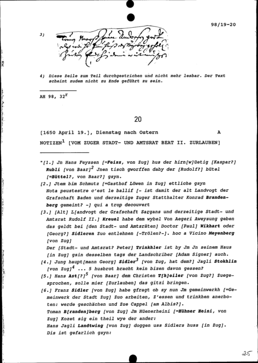 Notiz von Beat II. Zurlauben, Stadt- und Amtrat Zug