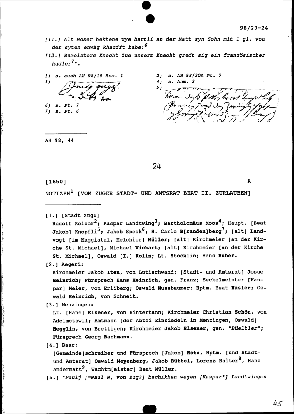 Notiz von Beat II. Zurlauben, Stadt- und Amtrat Zug