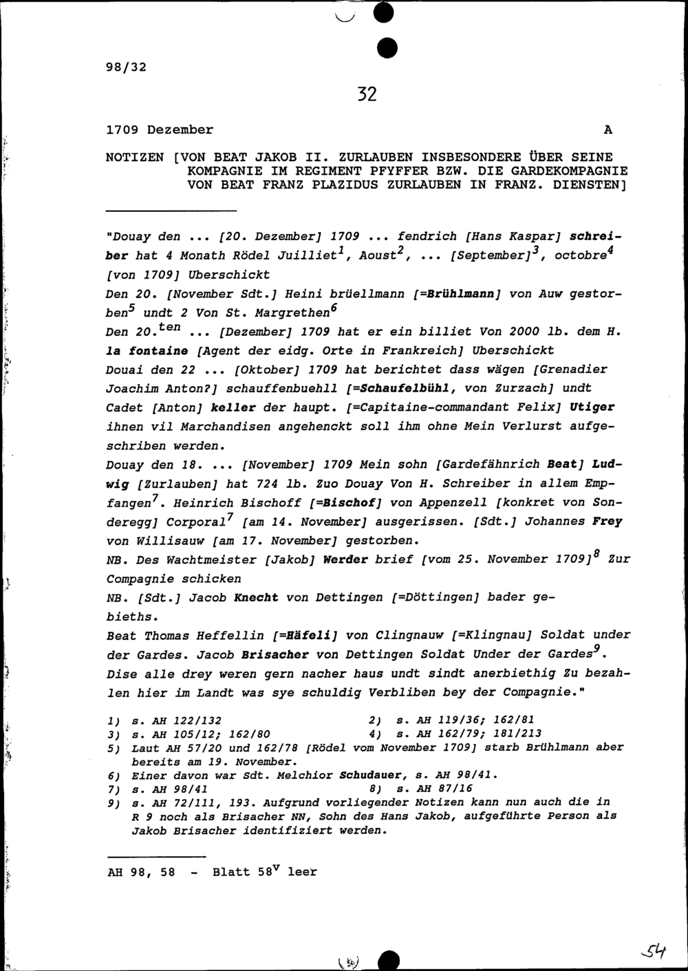 Notiz von Beat Jakob II. Zurlauben insbesondere über seine Kompanie im Regiment Pfyffer...