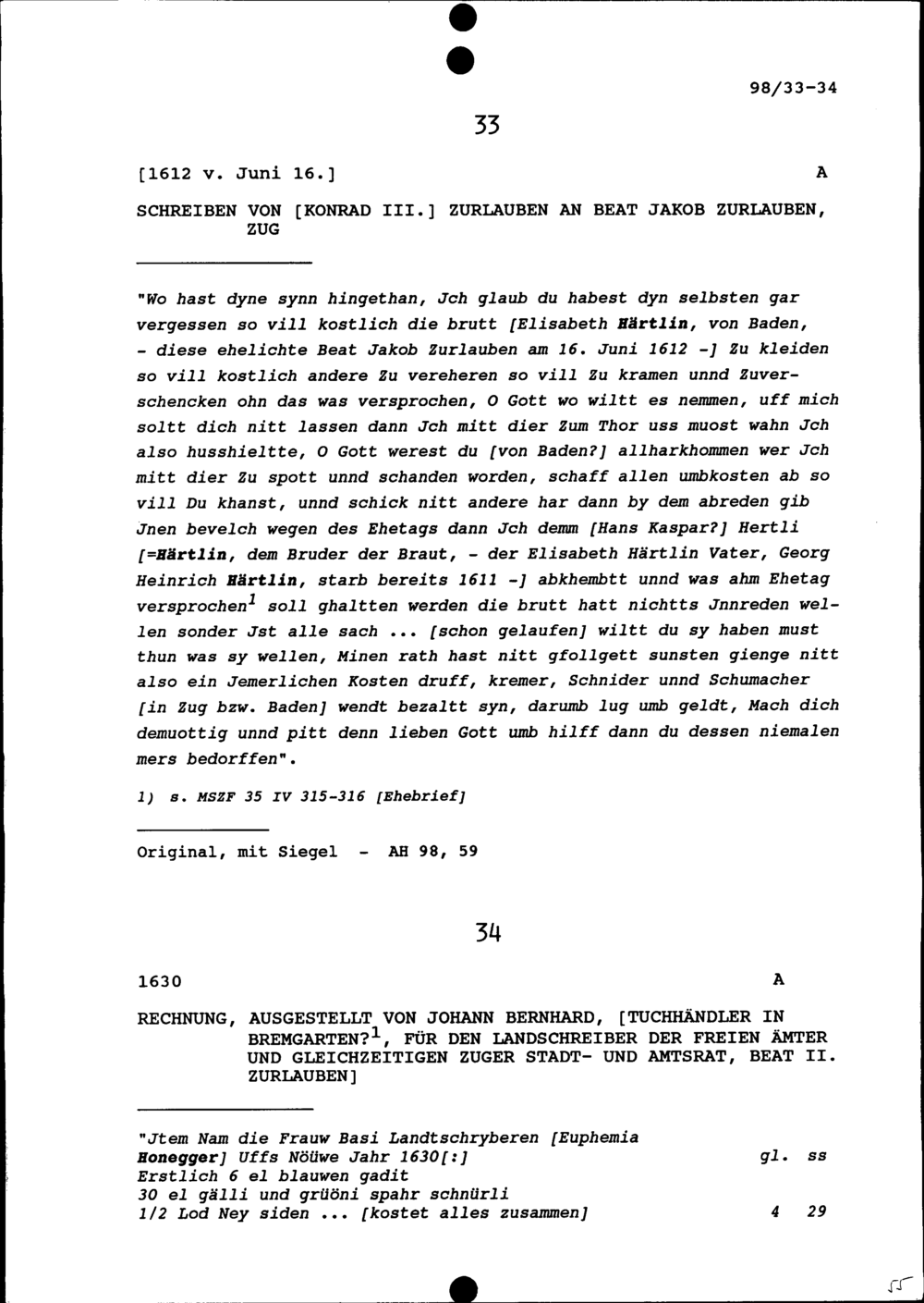 Schreiben von Konrad III. Zurlauben an Beat Jakob Zurlauben, Zug