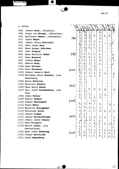 Ausgaben für Ausrüstung, bei Felix Utiger, Leutnant von der Kompanie von Beat Jakob II. Zurlauben, Hauptmann im Regiment Pfyffer seit der Schlacht von Ramillies vom 23. Mai 1706 und von Juni 1706 zu Ypern bis Mai 1707 zu Lille