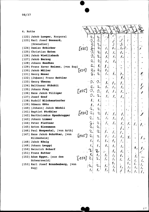 Ausgaben für Ausrüstung, bei Felix Utiger, Leutnant von der Kompanie von Beat Jakob II. Zurlauben, Hauptmann im Regiment Pfyffer seit der Schlacht von Ramillies vom 23. Mai 1706 und von Juni 1706 zu Ypern bis Mai 1707 zu Lille