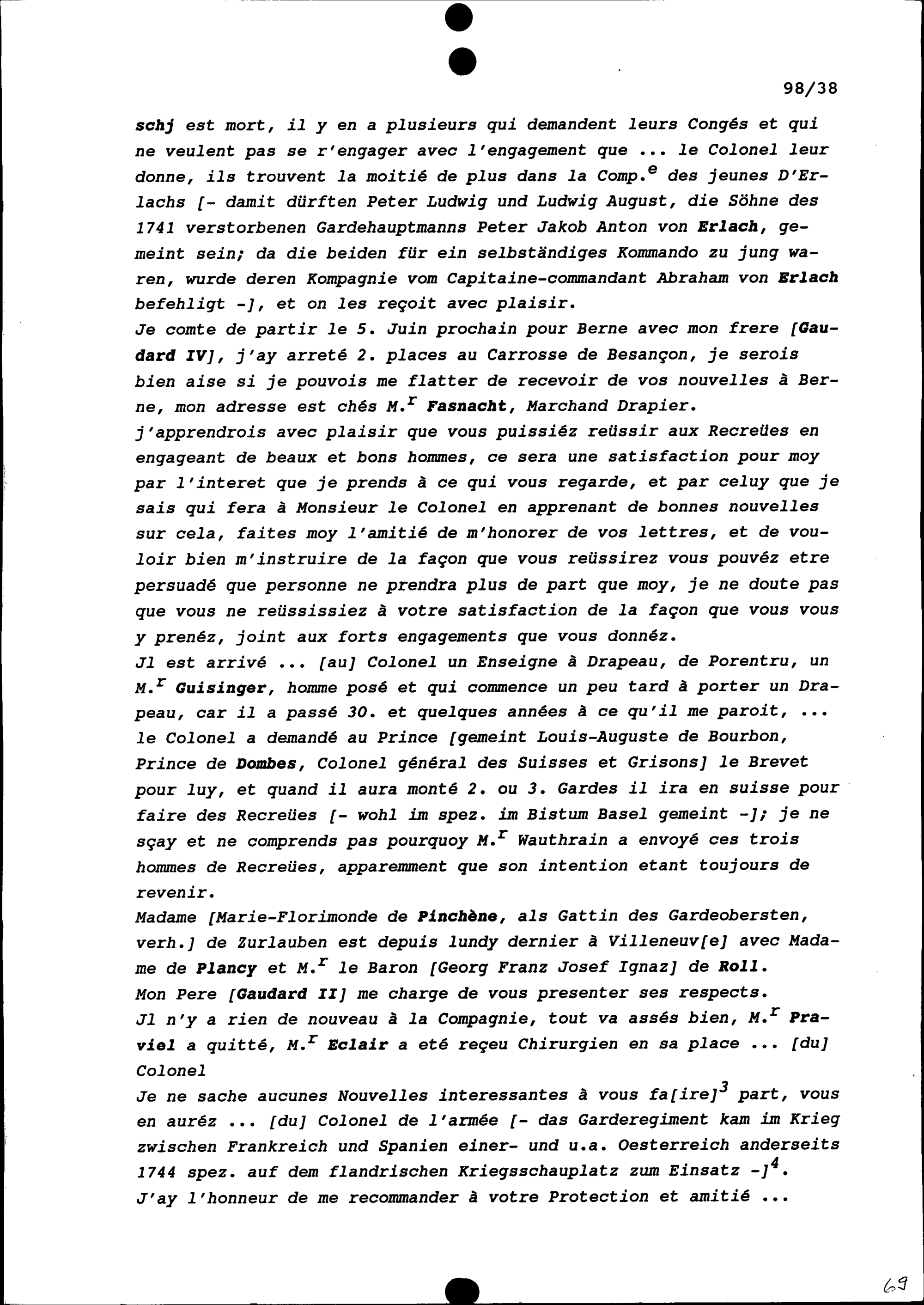 Schreiben von Louis Gaudard an Beat Fidel Zurlauben, Gardehauptmann, Zug