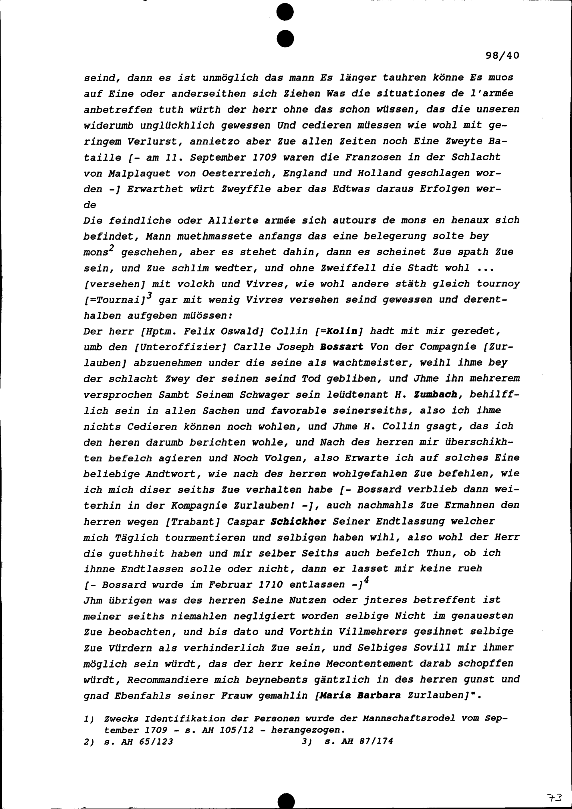Schreiben von Felix Utiger, Kommandant in der Kompanie Zurlauben im Regiment Pfyffer, an Beat Jakob II. Zurlauben, Kompanie Inhaber und Hauptmann