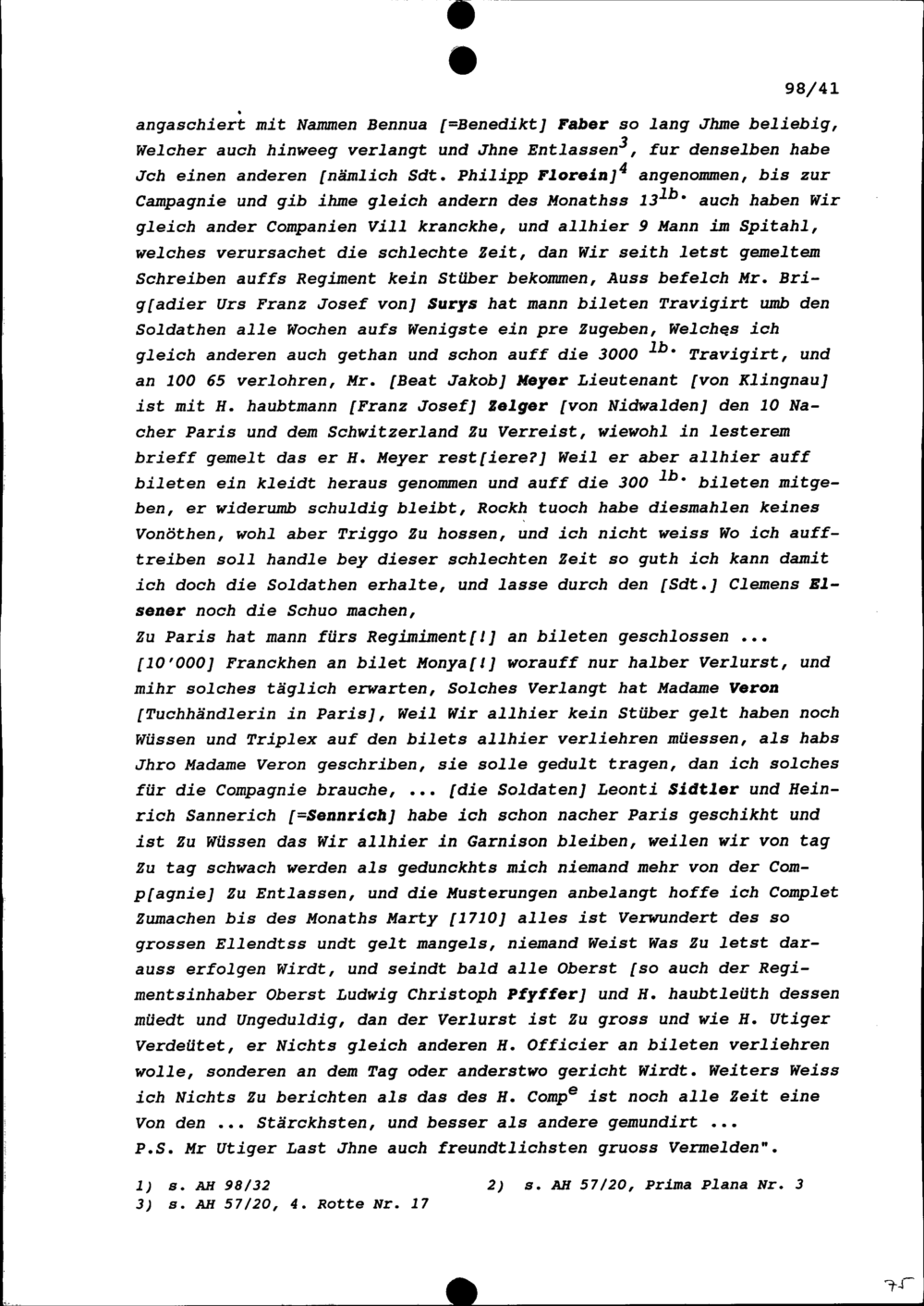 Rechnung für Beat II. Zurlauben, ausgestellt von Thomas Blüler, Aamüller in Zug