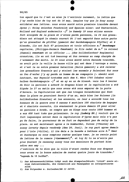 Schreiben von Gabriel-Jean-Joseph de Reynold, Gardeleutnant, an Beat Fidel Zurlauben, Kommandant der Schweizer Garden, Zug