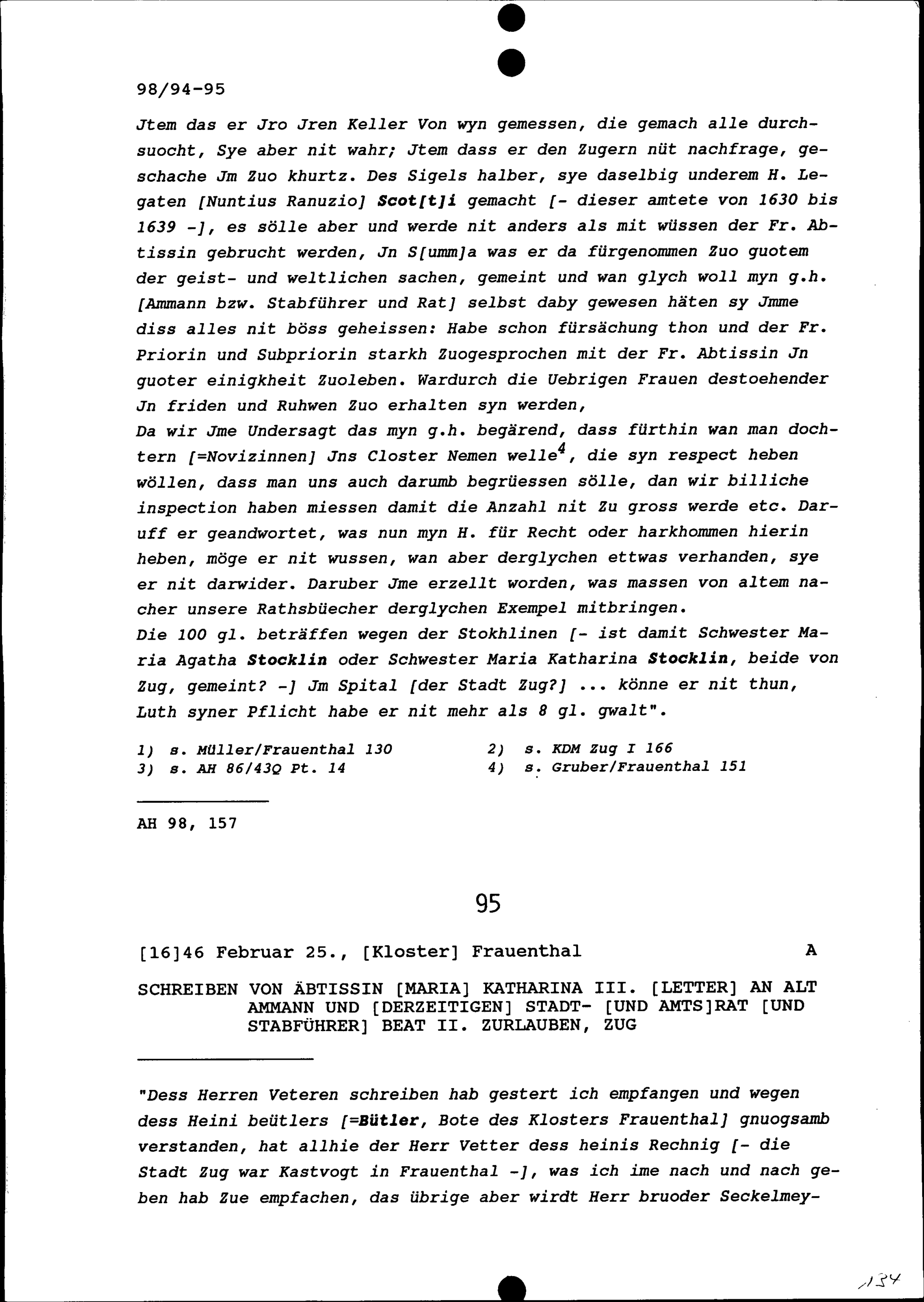 Schreiben von Maria Katharina III. Letter, Äbtissin, an Beat II. Zurlauben, Altammann und Stadt- und Amtrat und Stabführer der Stadt Zug, Zug