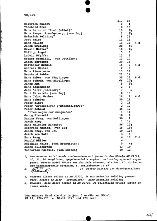 Rodel über die Guthaben und Schulden der Soldaten der Gardekompanie von Beat II. Zurlauben
