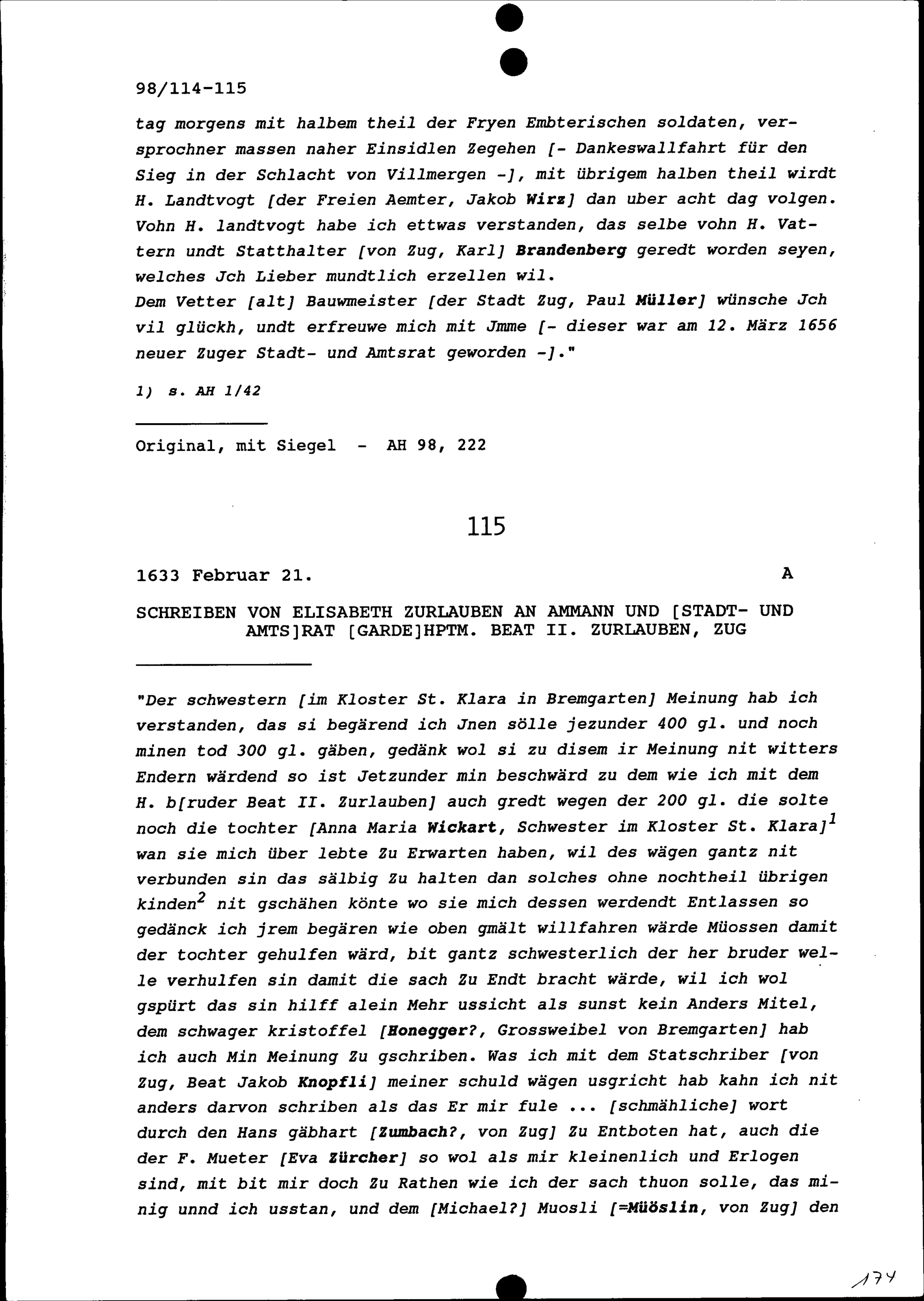Schreiben von Elisabeth Zurlauben an Beat II. Zurlauben, Ammann Stadt- und Amtrat...