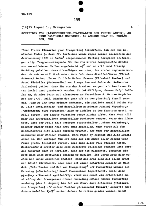 Schreiben von Johann Balthasar Honegger, Landschreiberstatthalter der Freien Ämter,...