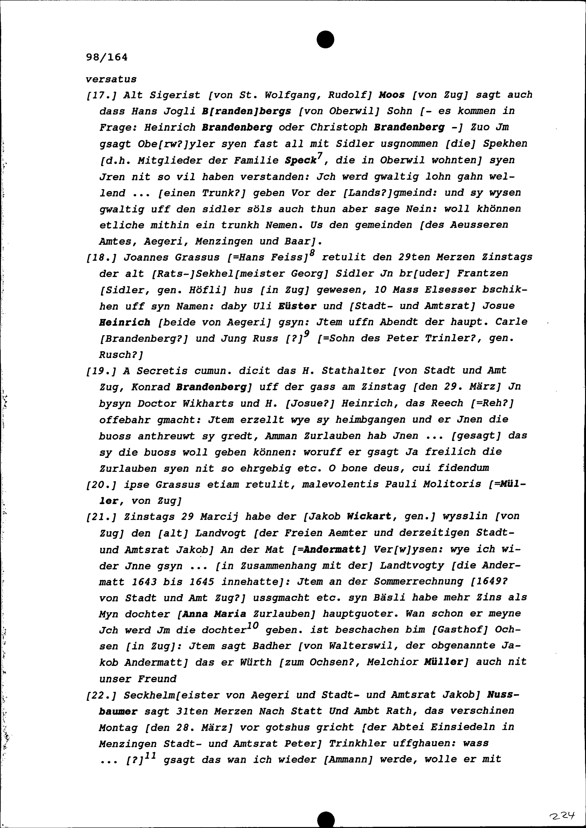 Notiz von Beat II. Zurlauben, Stadt- und Amtrat Zug