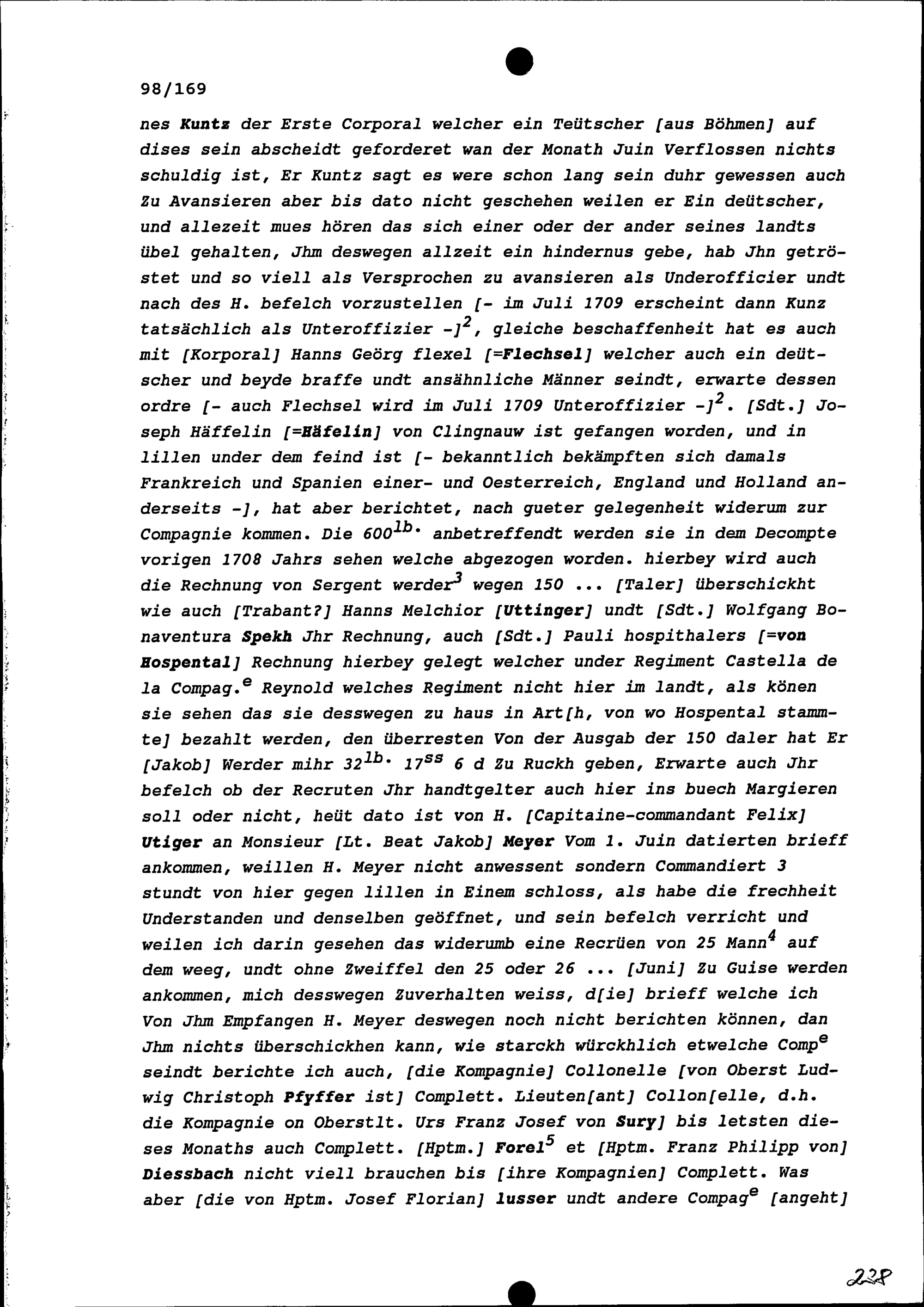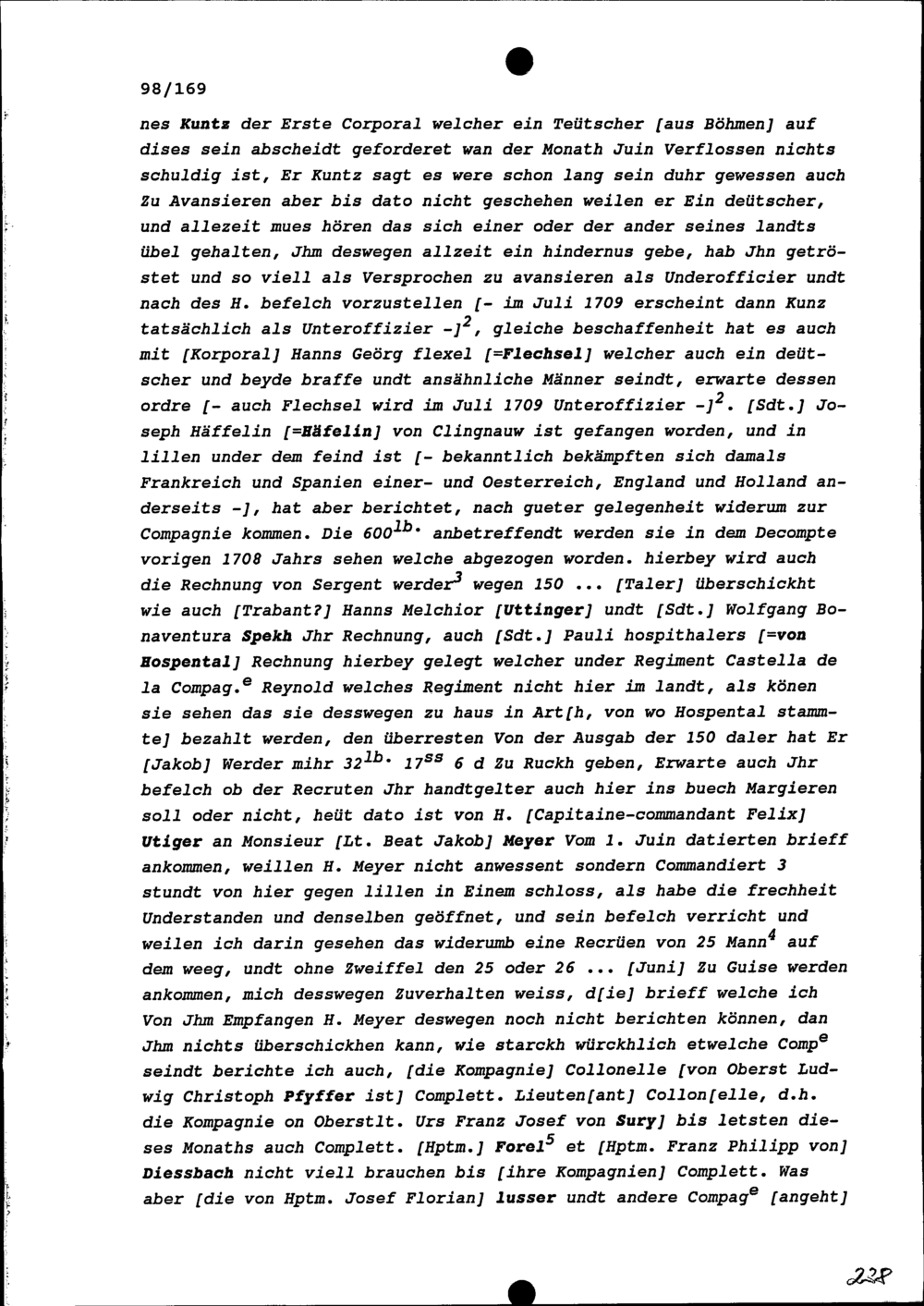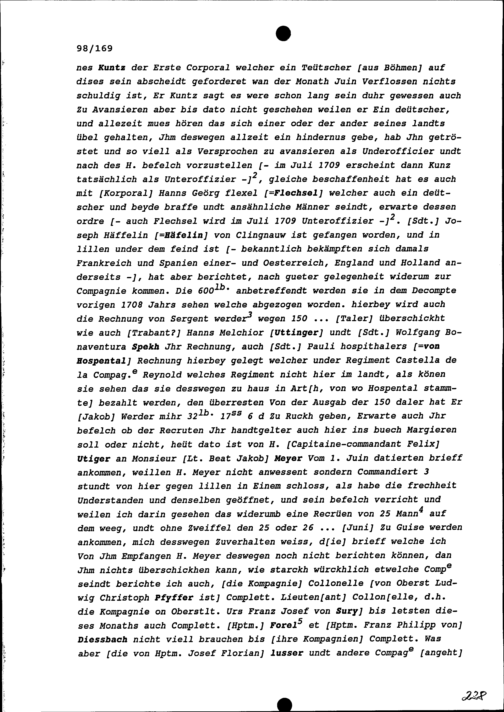 Schreiben von Hans Kaspar Schreiber, Fähnrich in der Kompanie Zurlauben im Regiment...