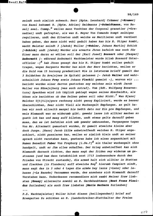 Schreiben von Hans Kaspar Schreiber, Fähnrich in der Kompanie Zurlauben im Regiment...