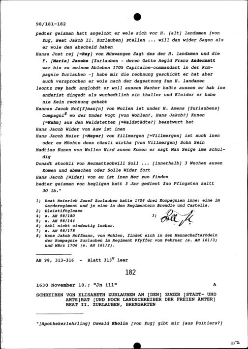 Schreiben von Elisabeth Zurlauben an Beat II. Zurlauben, Stadt- und Amtrat Zug und noch Landschreiber der Freien Ämter, Bremgarten