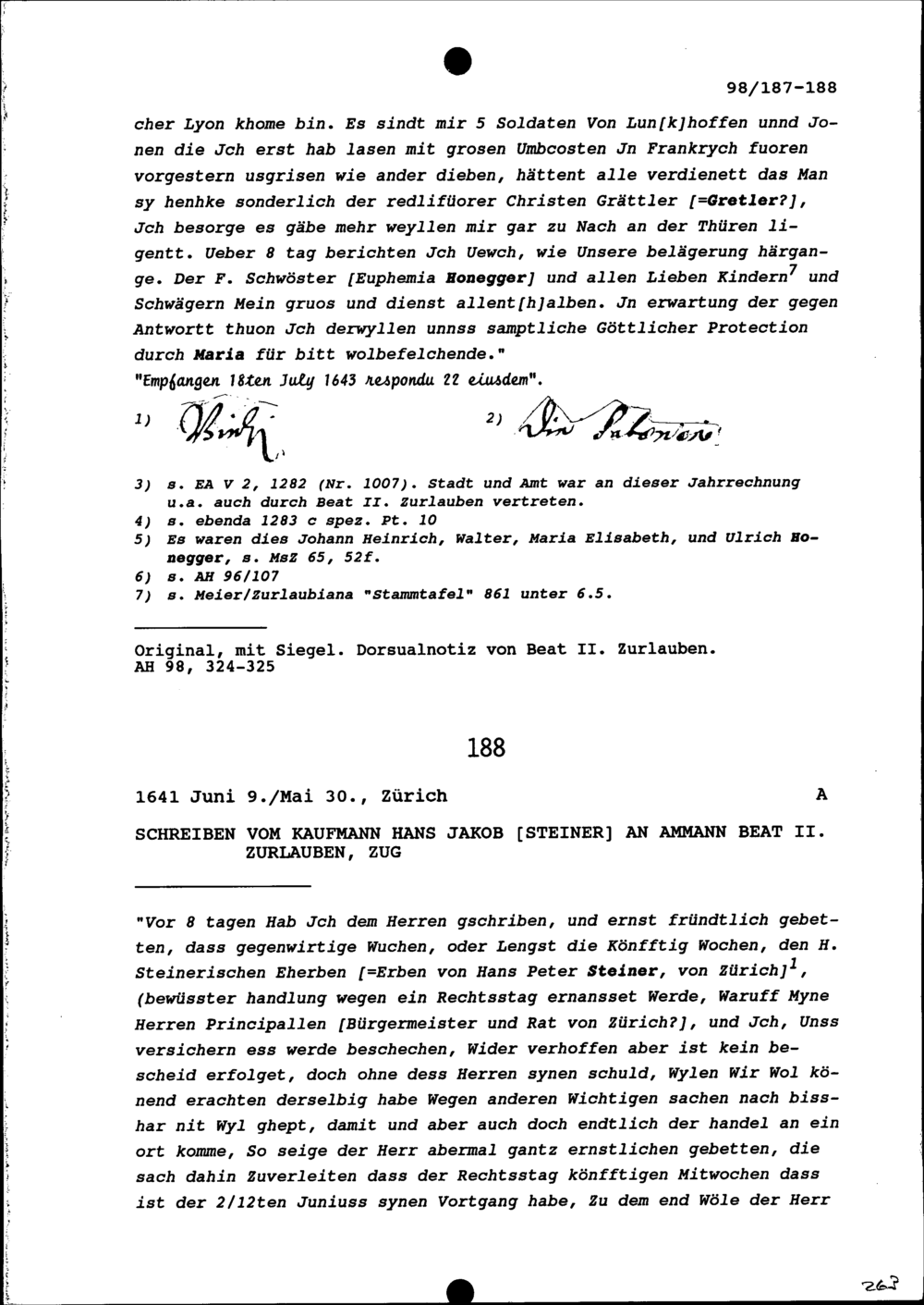 Schreiben von Hans Jakob Steiner, Kaufmann, an Beat II. Zurlauben, Ammann, Zug