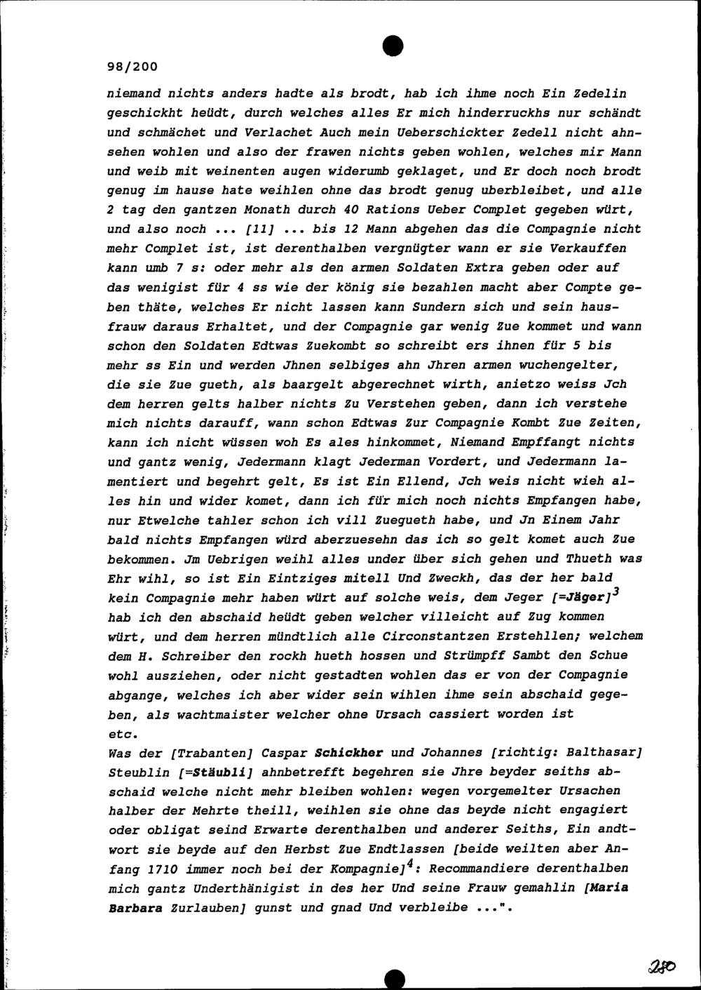 Schreiben von Felix Utiger, Kommandant in der Kompanie Zurlauben im Regiment Pfyffer, an Beat Jakob II. Zurlauben, Kompanieinhaber