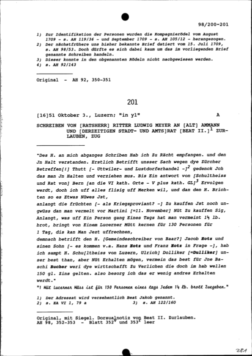Schreiben von Ludwig Meyer, Ratsherr, an Beat II. Zurlauben, Altammann und Stadt-...