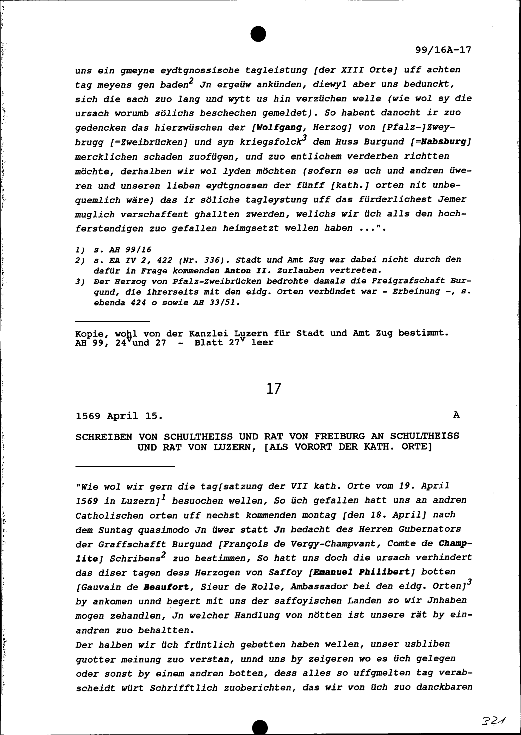 Schreiben des Schultheiss und Rats von Freiburg an Schultheiss und Rat Luzern, Vorort...