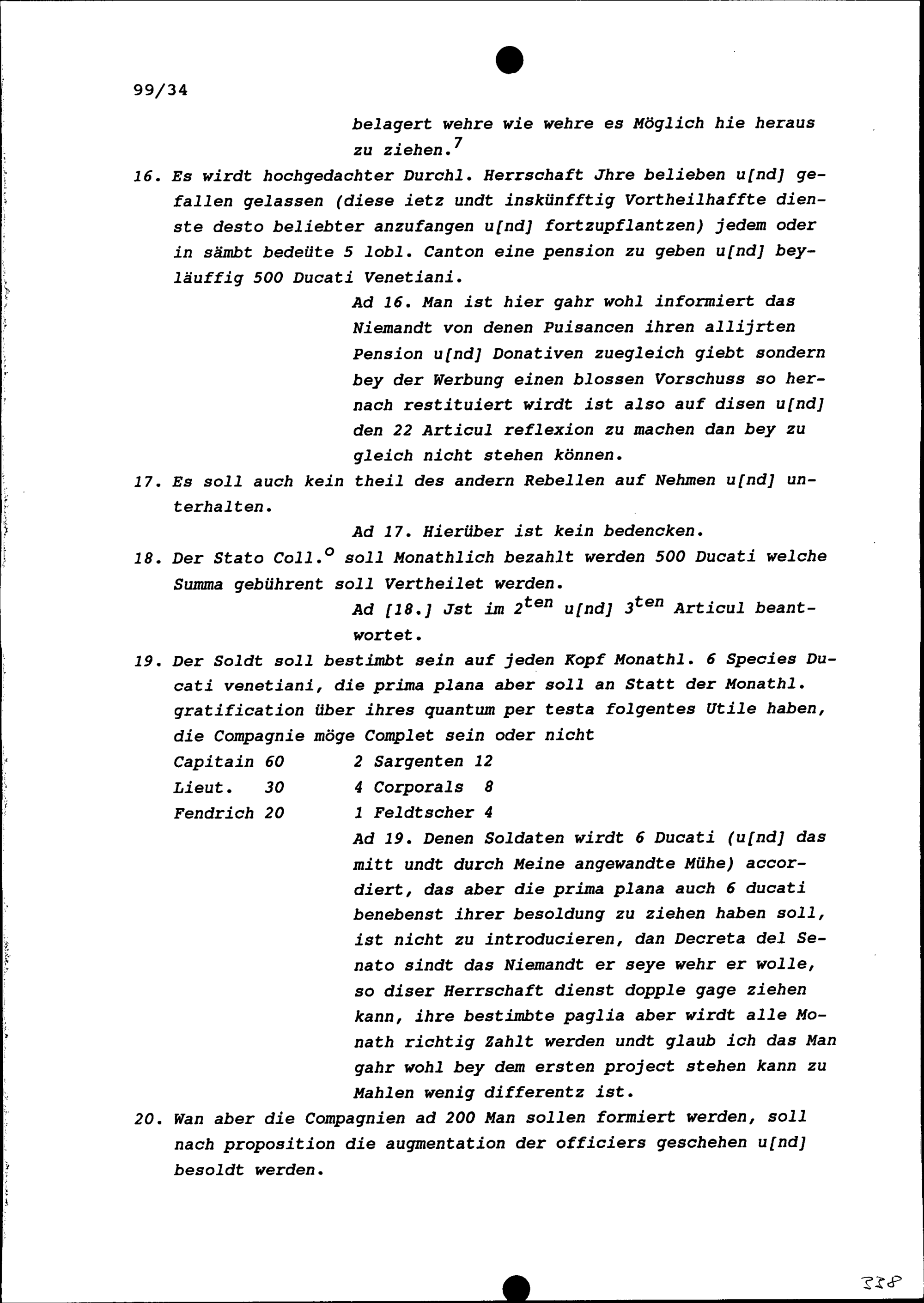 Entwurf einer Kapitulation zwischen der Republik Venedig einerseits und den Fünf Katholischen Orten anderseits