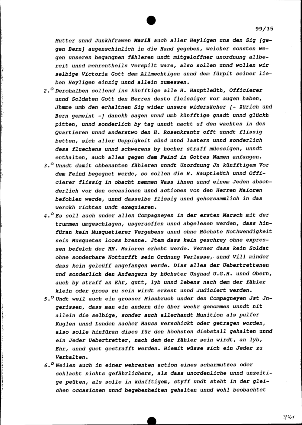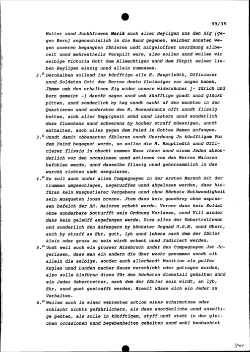 Instruktion und Kriegsordonnanz an die Hauptleute, Offiziere und Soldaten der Fünf Katholischen Orte beziehungsweise von Stadt und Amt Zug
