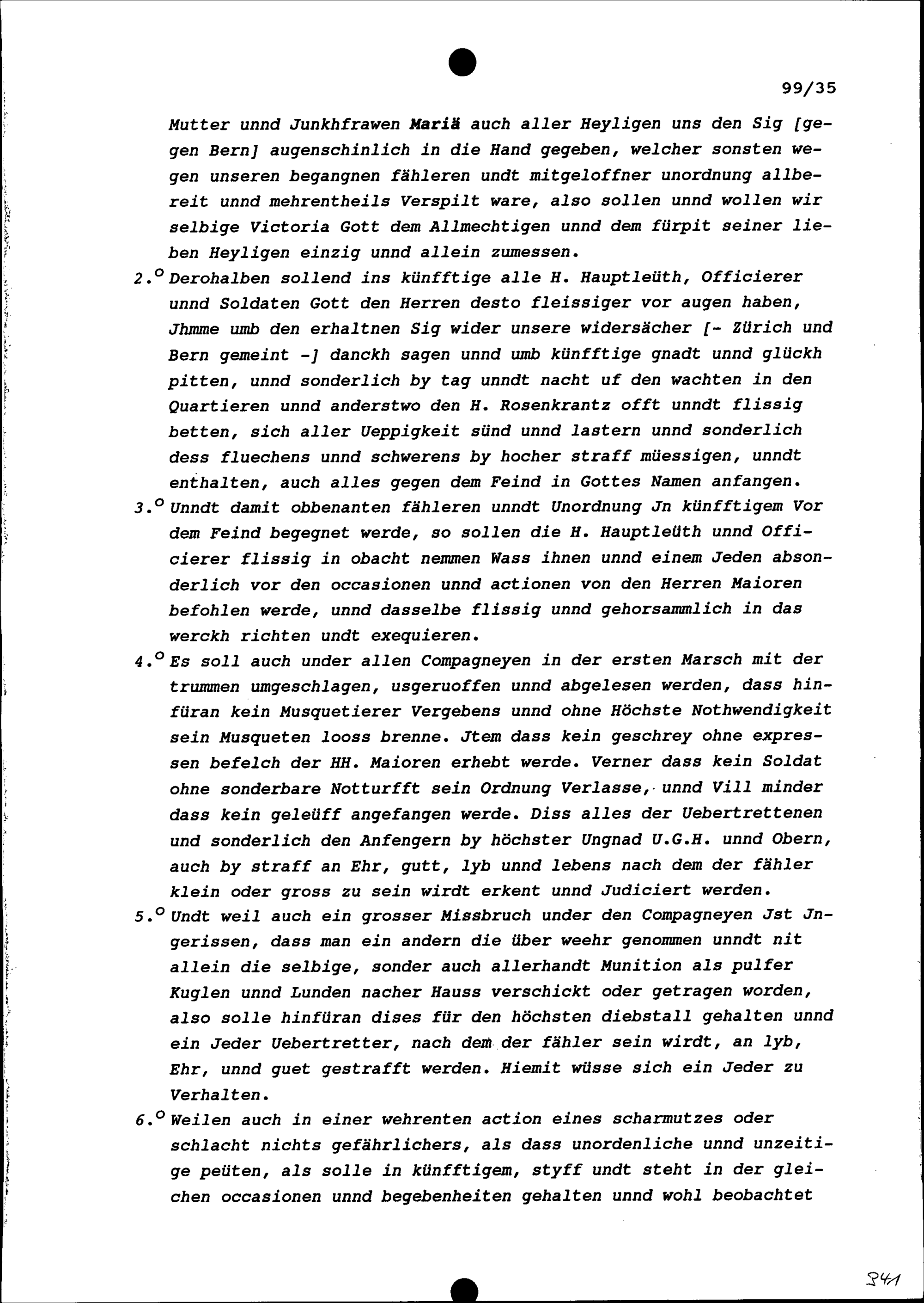 Instruktion und Kriegsordonnanz an die Hauptleute, Offiziere und Soldaten der Fünf...