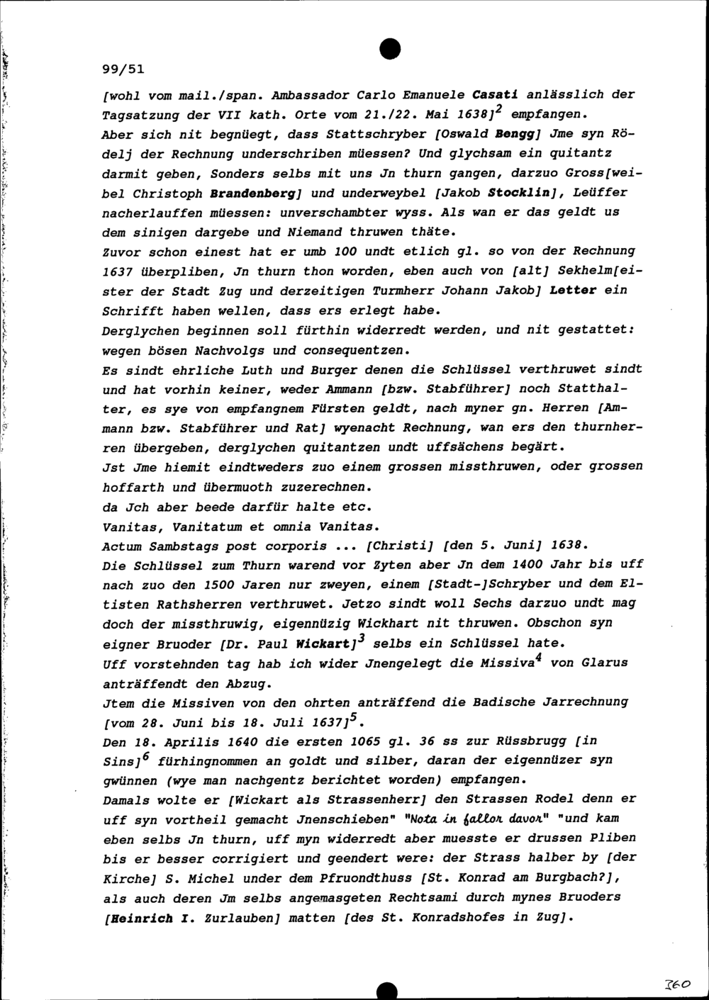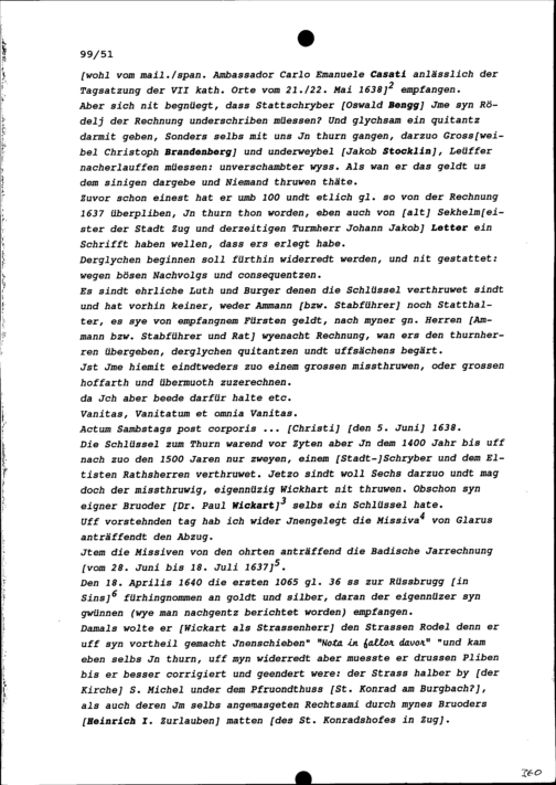 Notiz von Beat II. Zurlauben, Stabführer der Stadt Zug, zu den Auseinandersetzungen mit Wolfgang Wickart, Stadt- und Amtrat