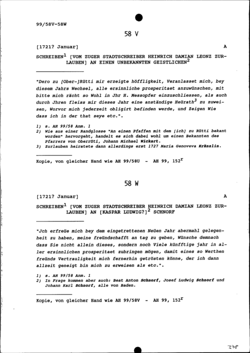 Schreiben von Heinrich Damian Leonz Zurlauben, Zuger Stadtschreiber, an einen Geistlichen