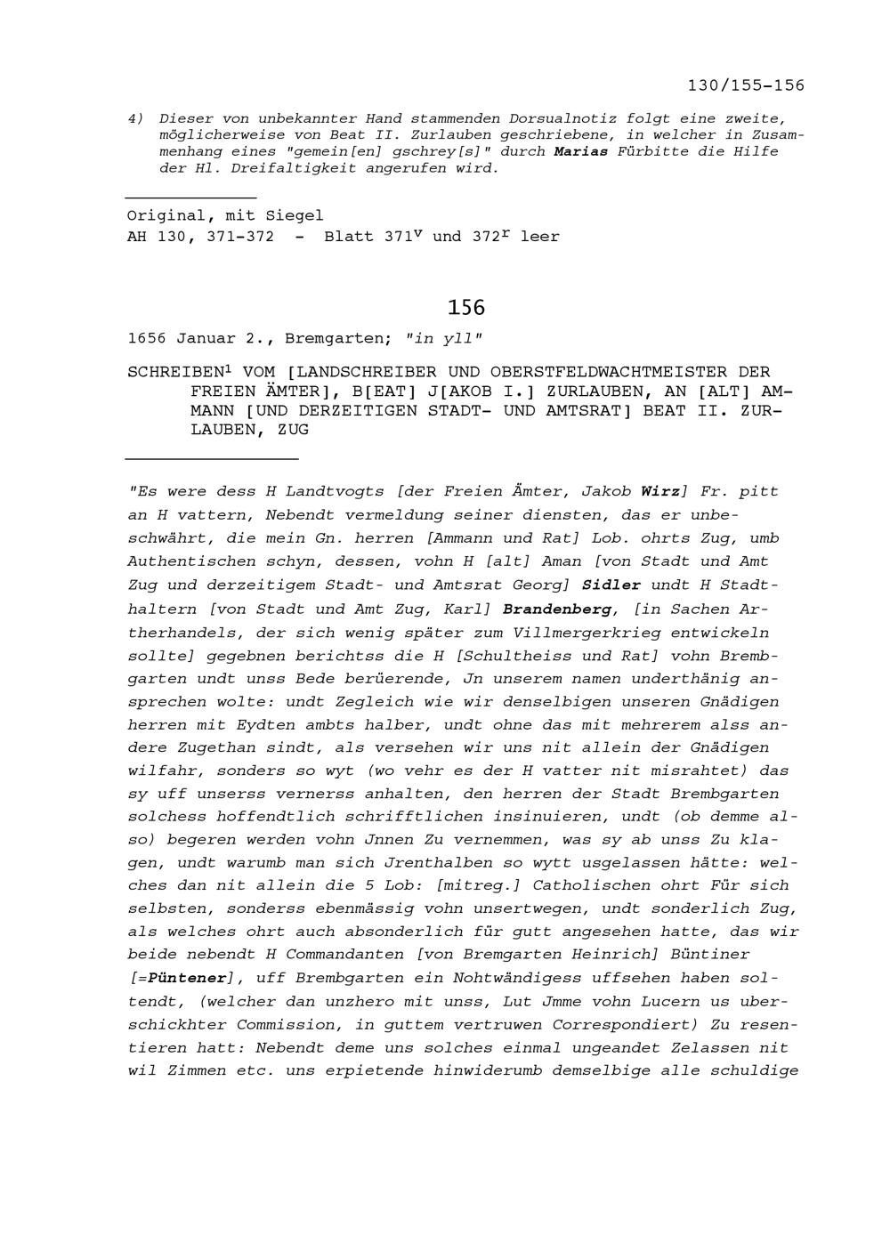 Schreiben von Heinrich II. Zurlauben, Zuger Oberstfeldwachtmeister, an Beat II. Zurlauben,...