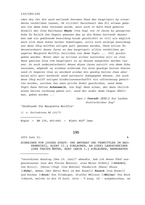 Ratsbeschluss des Ammanns und Rats der Stadt Zug für Margareth Wolf, von Neuenkirch und Zug
