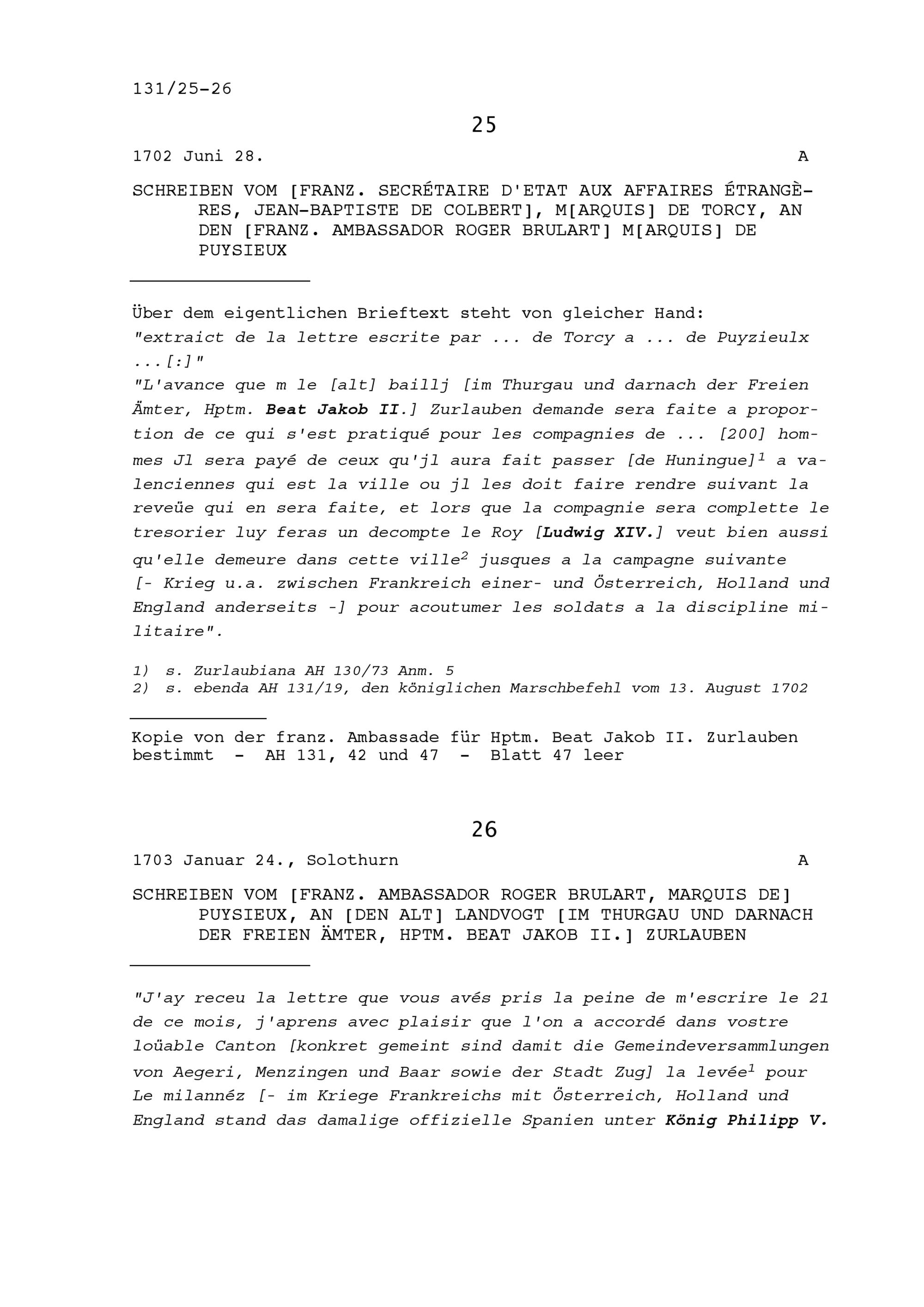 Schreiben von Roger Brûlart, Marquis de Puysieux, Ambassador von Frankreich, an Beat...