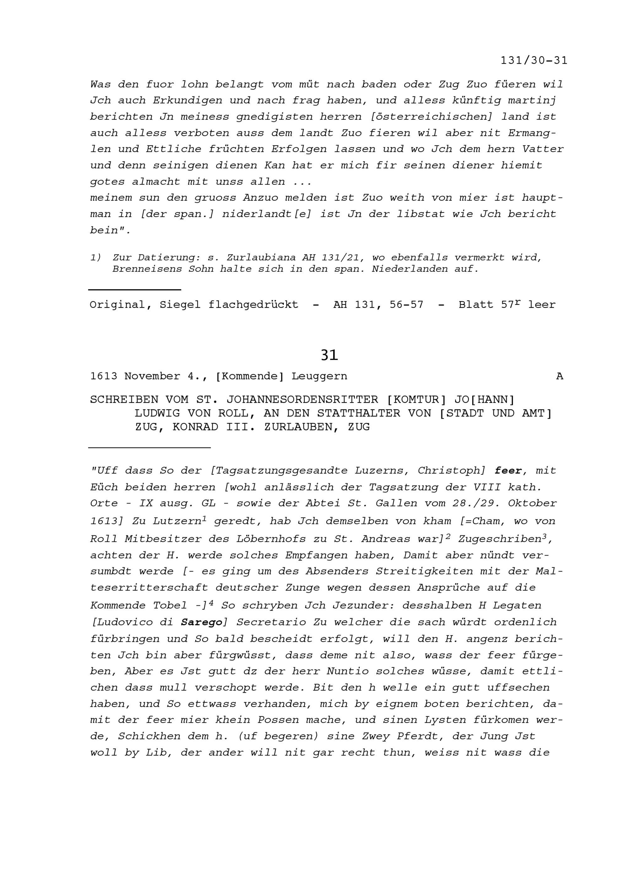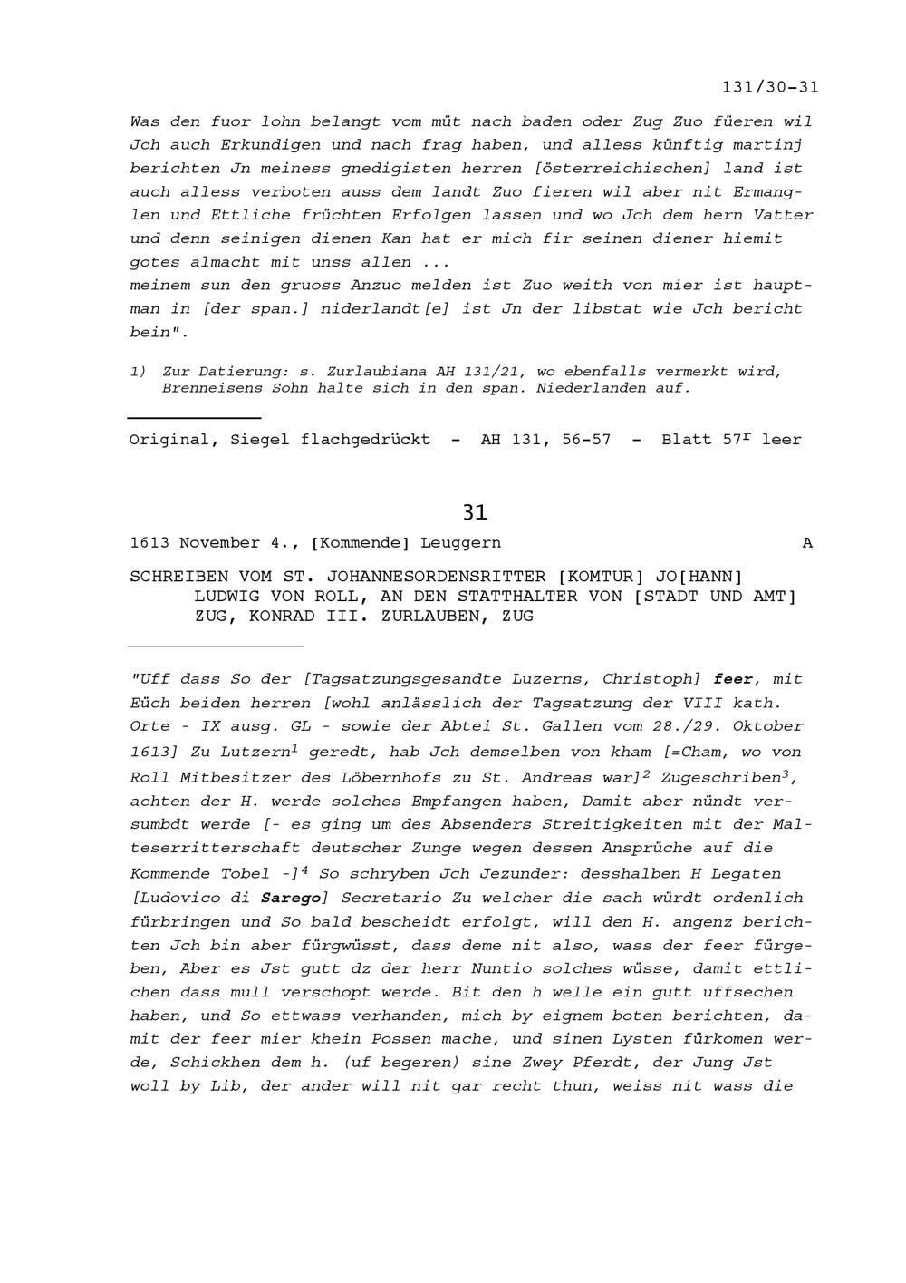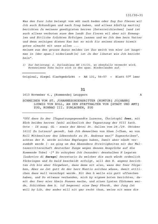 Schreiben von Lukas Brenneisen von Hohenmauren, Hauptmann und Obervogt von Stadt und Herrschaft Oberndorf, an Beat II. Zurlauben, Landschreiber der Freien Ämter, Bremgarten