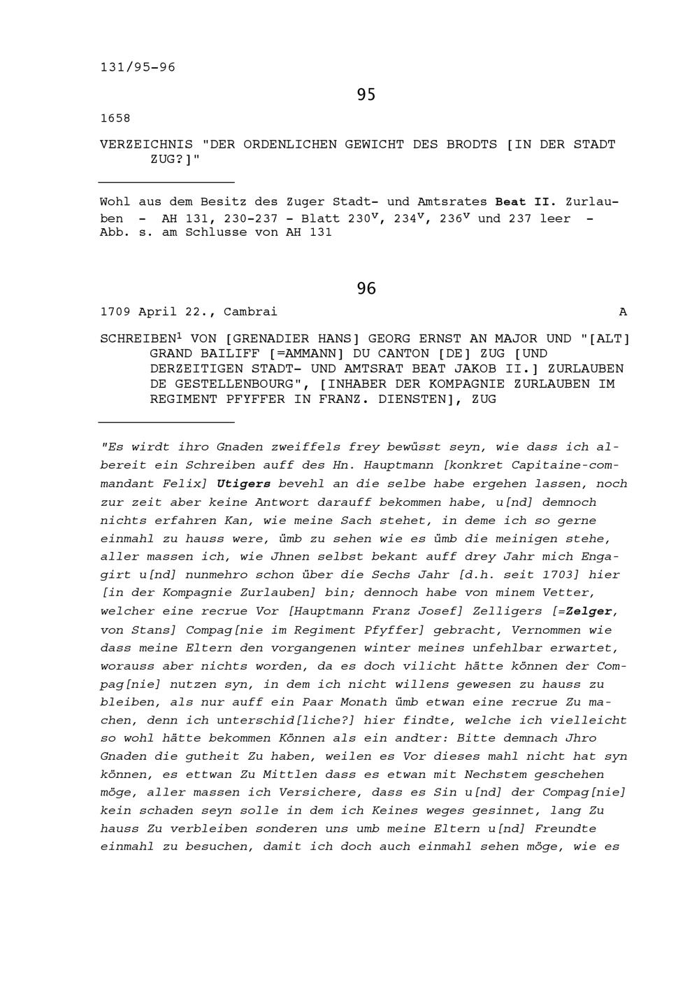 Schreiben von Hans Georg Ernst, Grenadier, an Beat Jakob II. Zurlauben, Major, Ammann von Zug und Stadt- und Amtrat, Inhaber der Kompanie Zurlauben im Regiment Pfyffer in französischen Diensten, Zug