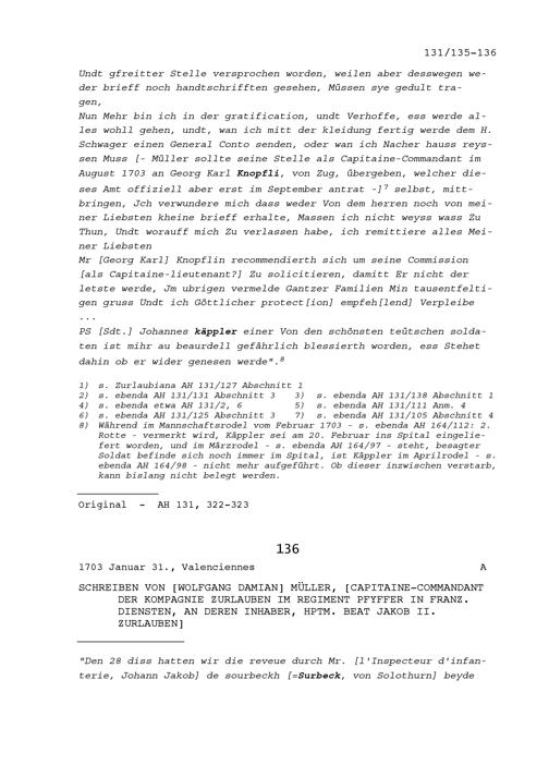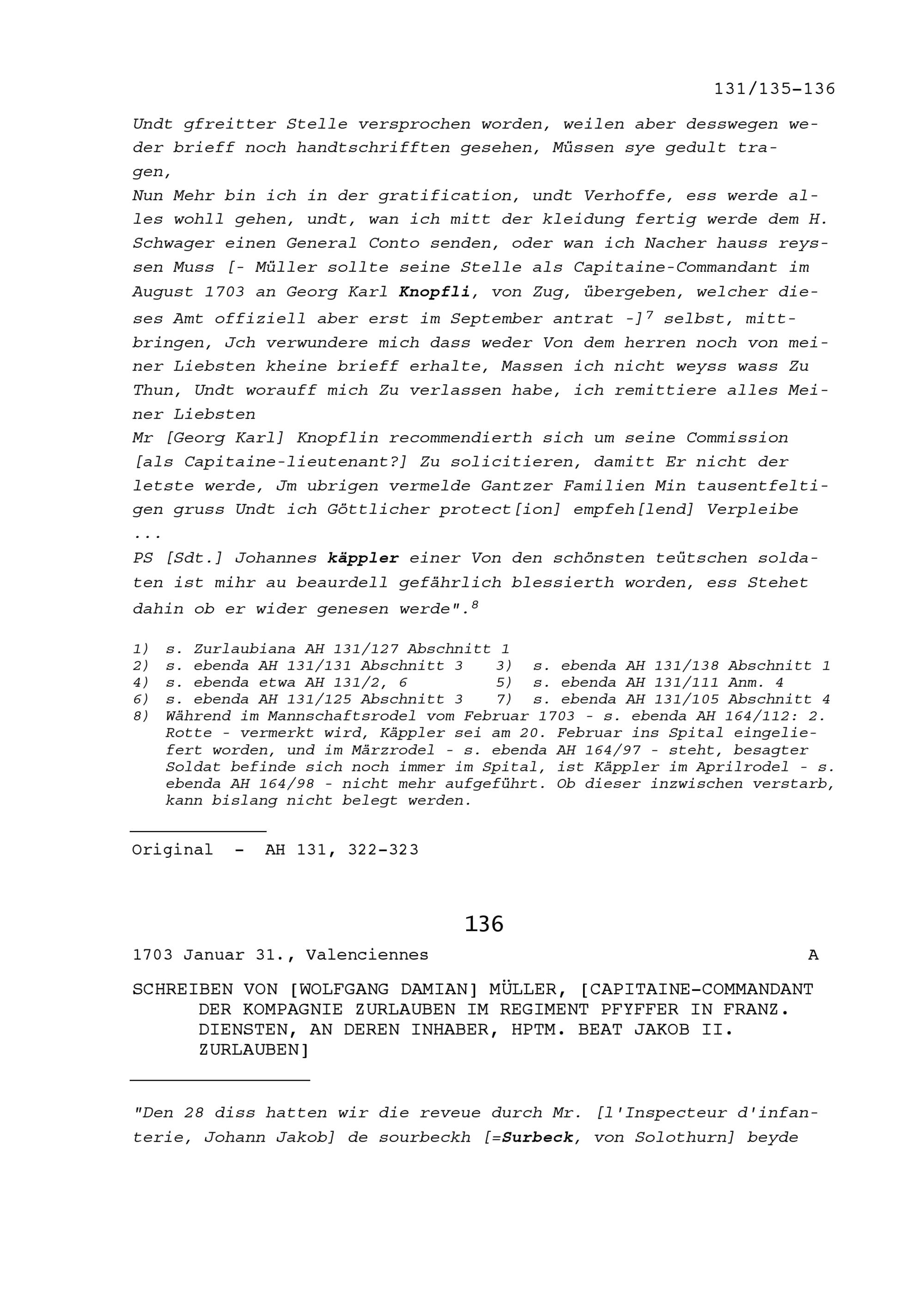 Schreiben von Wolfgang Damian Müller, Kommandant der Kompanie Zurlauben im Regiment...
