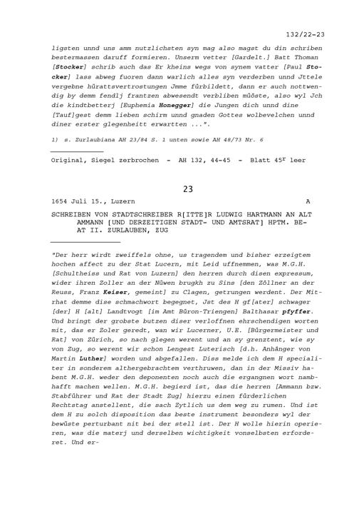 Schreiben von Konrad III. Zurlauben, Stadt- und Amtrat und Gardehauptmann, an Beat...