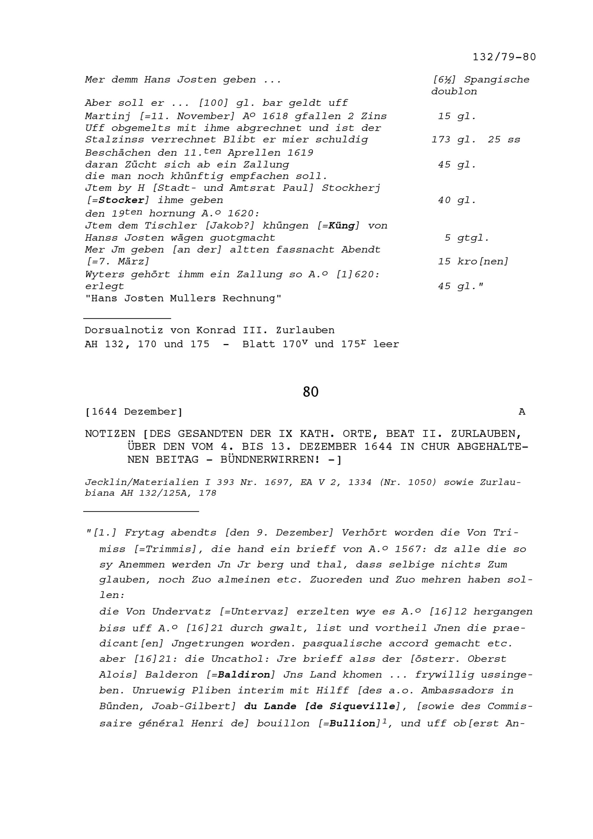 Abrechnung zwischen Konrad III. Zurlauben, Stadt- und Amtrat Zug, und Johann Jost...