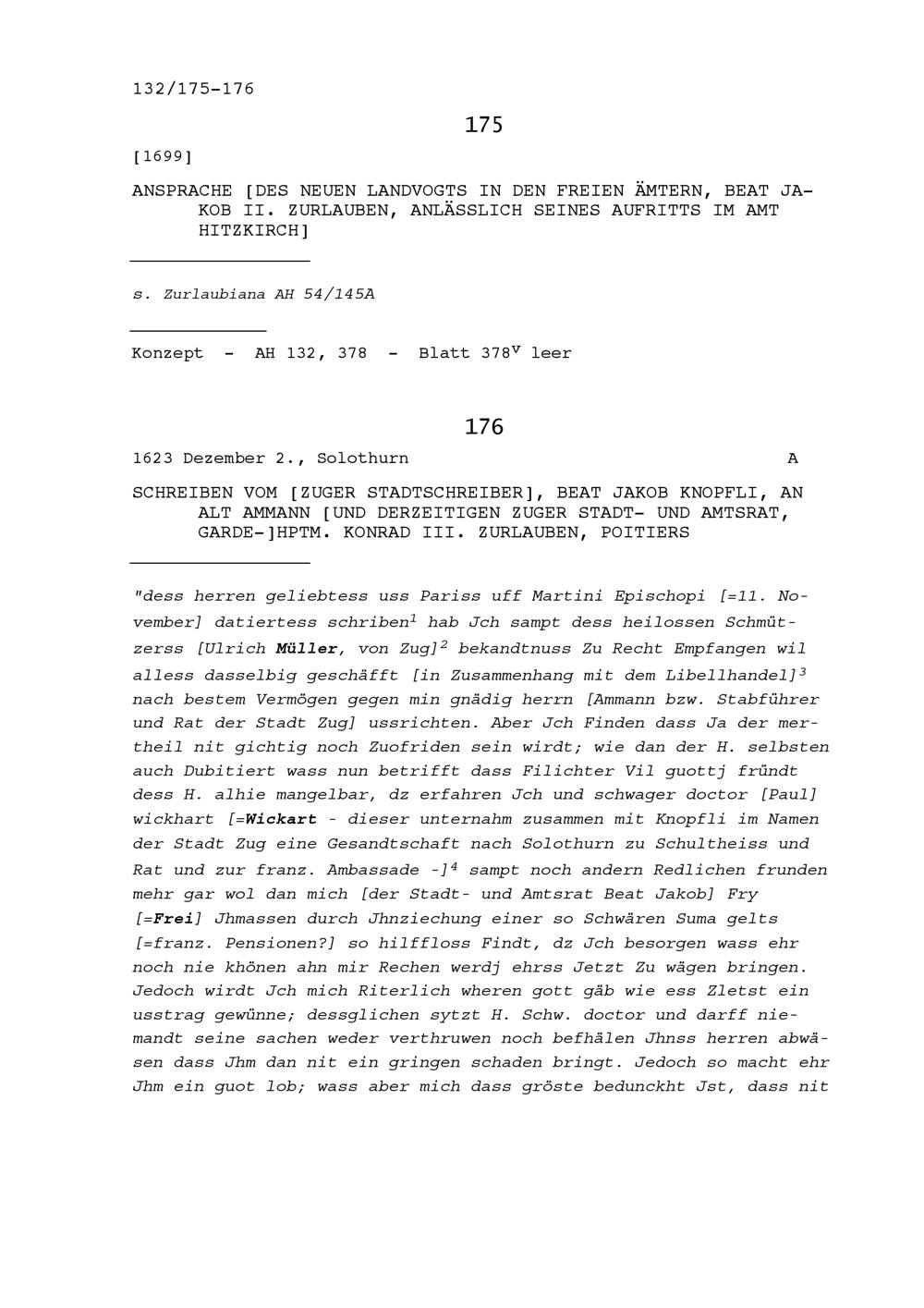 Schreiben von Beat Jakob Knopfli, Zuger Stadtschreiber, an Konrad III. Zurlauben,...
